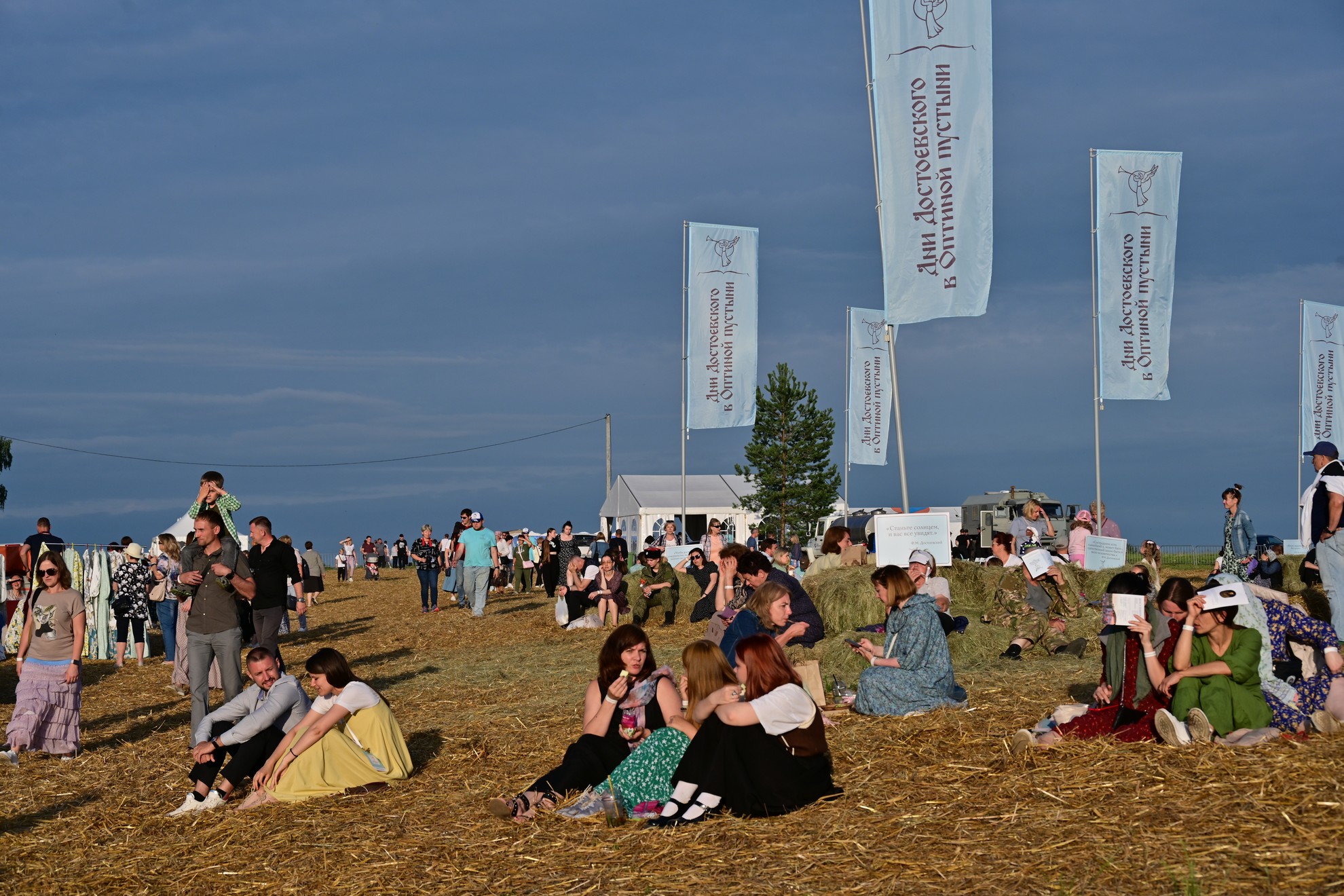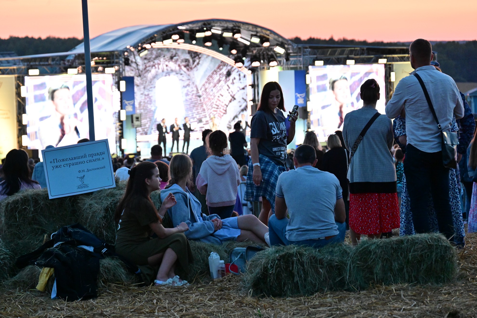 Зрители расположились на сене, а в различных локациях праздника можно было увидеть цитаты великого писателя.