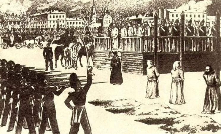 Дело вроде копеечное. Однако царь Николай I был жёстким. Он решил преподать им такой урок, чтобы запомнили. Судить по полной программе. Для этого устроил целый спектакль с расстрелом.