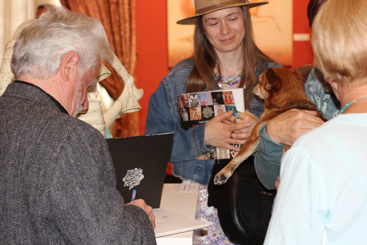 Сергей Феофанов подарил всем гостям вернисажа каталог своей выставки и подписал на память.