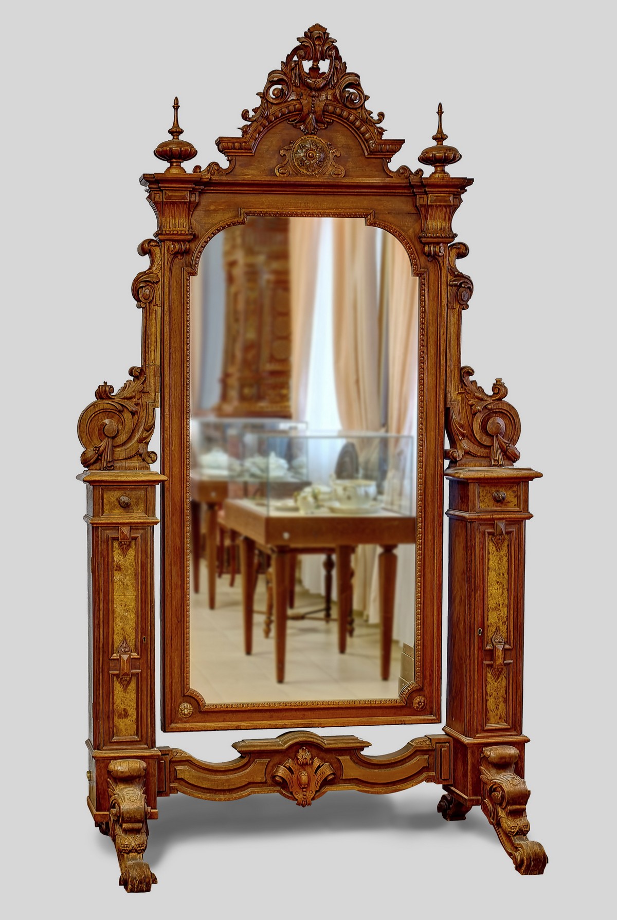 Напольное зеркало-псише сделано в эпоху господства в искусстве стиля историзм.