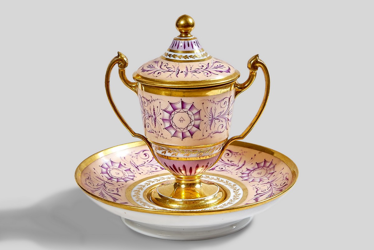 Хранится в музее и чайная пара, созданная предположительно в 1820-е годы. Это уже французский фарфор в стиле ампир.