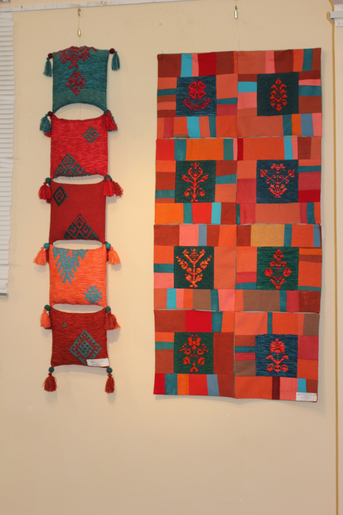 Это интерьерные вещи. Да, узоры традиционные, но в каждом изделии – дизайнерский подход. И это такая красота! Выполнено всё очень аккуратно и тщательно: ниточка к ниточке.