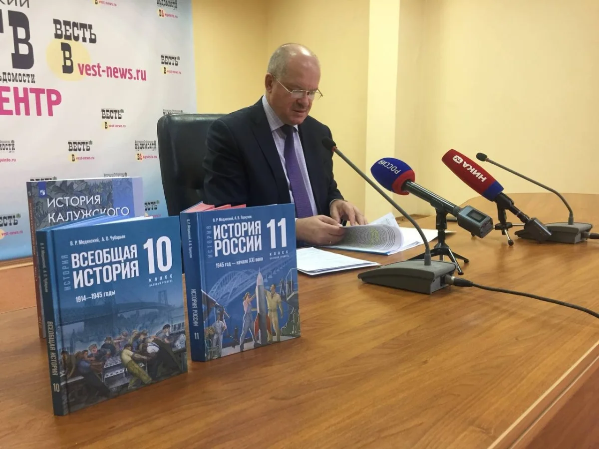 В школы региона уже поступил учебник Всеобщей истории для 10 класса. Он описывает события с 1914 года, начала Первой мировой войны, до окончания Великой Отечественной войны. Авторами этого учебника являются профессор Владимир Мединский и академик Александр Чубарьян. Вторая часть этого учебника описывает современность.