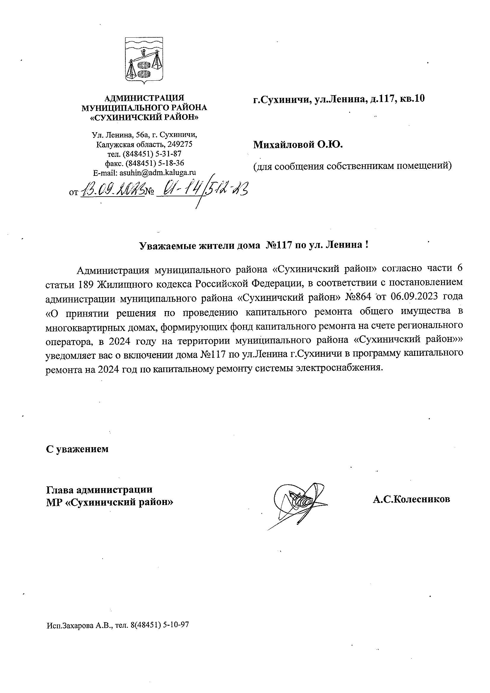 То, что капремонт в доме на ул. Ленина, 117 будет в 2025 году, подтвердил нам и глава администрации МР «Сухиничский район» Александр Колесников:
