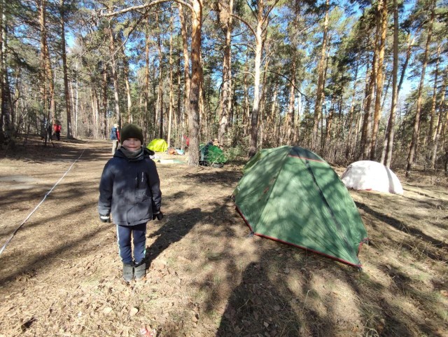Сын Николая Фёдор уже привык к ночёвкам в палатке.