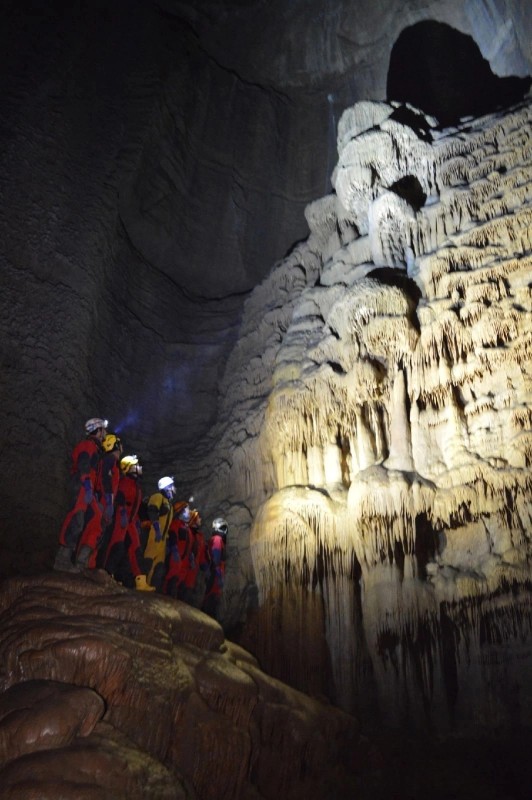 - В пещере темно все время, с фонарями ходим, телефоны не работают. Но там очень красиво: свисают сталактиты, снизу поднимаются сталагмиты, есть подземные водопады, озёра. Вода чистая, как слеза, пить можно. Мы её и пьем.