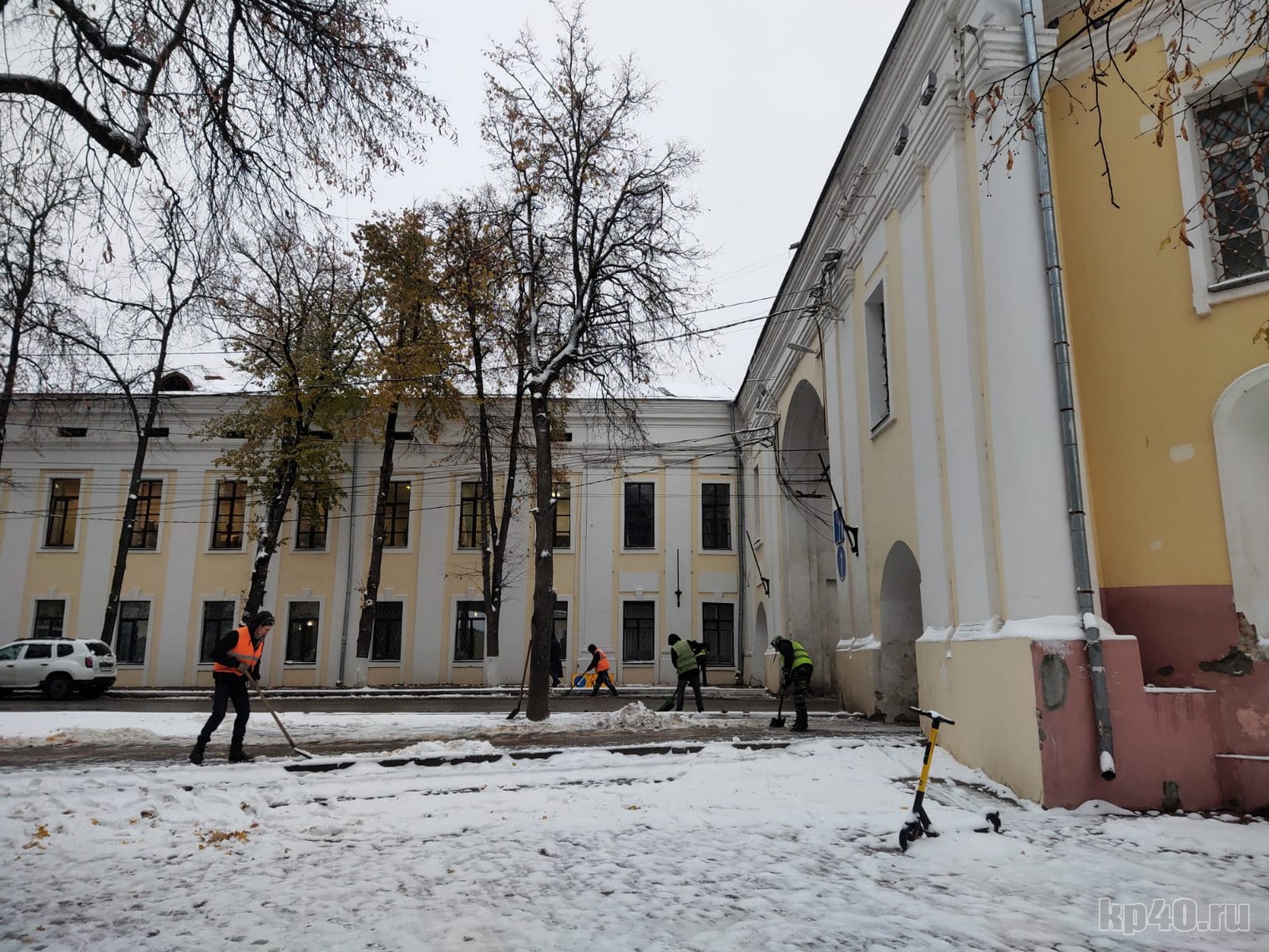 Власти Калуги заявили, что уборка идет круглосуточно. Городской голова Дмитрий Денисов сообщил утром 27 октября о 56 задействованных в этом машинах. Вышли также 35 рабочих.