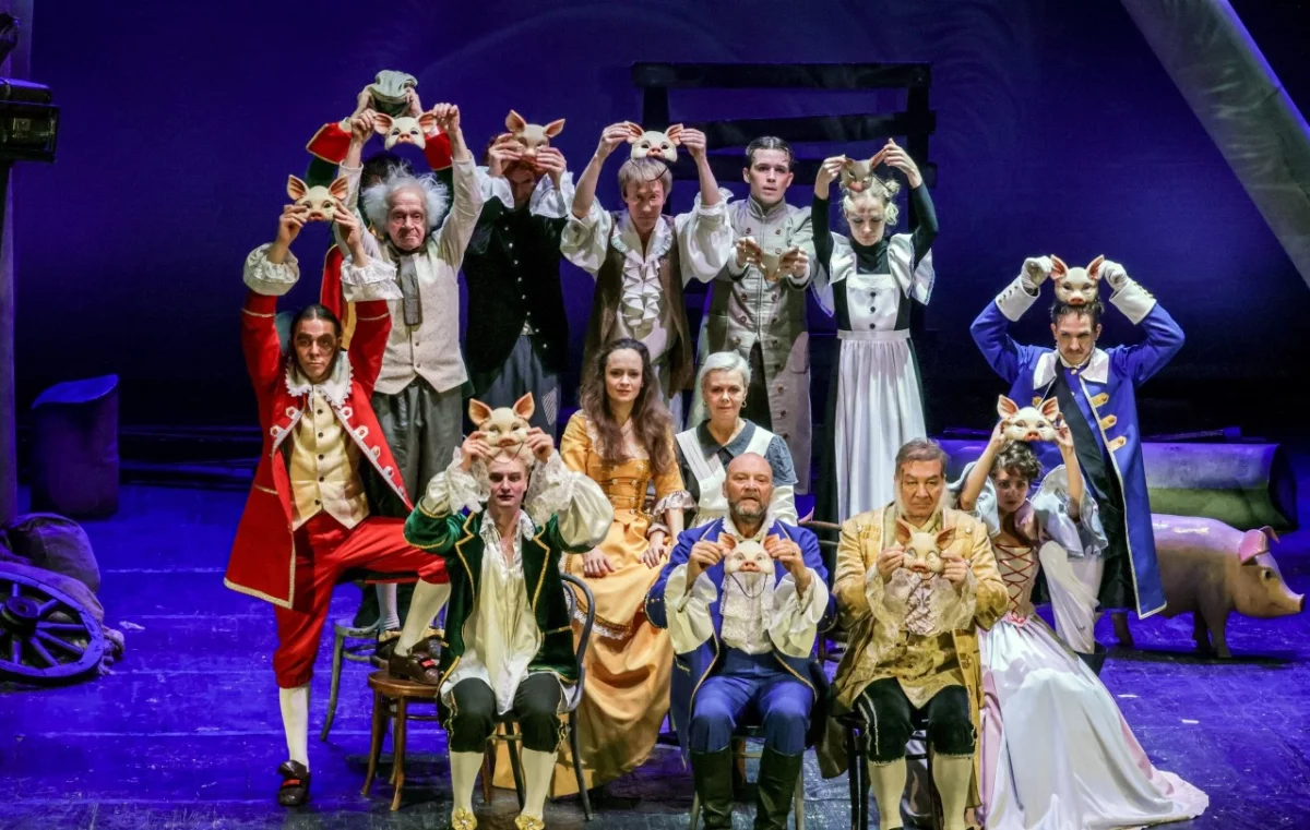 Неожиданные откровения режиссер несколько раз вставляет в общий шалманный тон спектакля. А точку ставят все исполнители уже на поклоне, когда, выйдя все в этих свиных масках, снимают их. Это посыл: ребята, оглянитесь вокруг, задумайтесь, вам не надоело жить с пластмассовыми лицами?