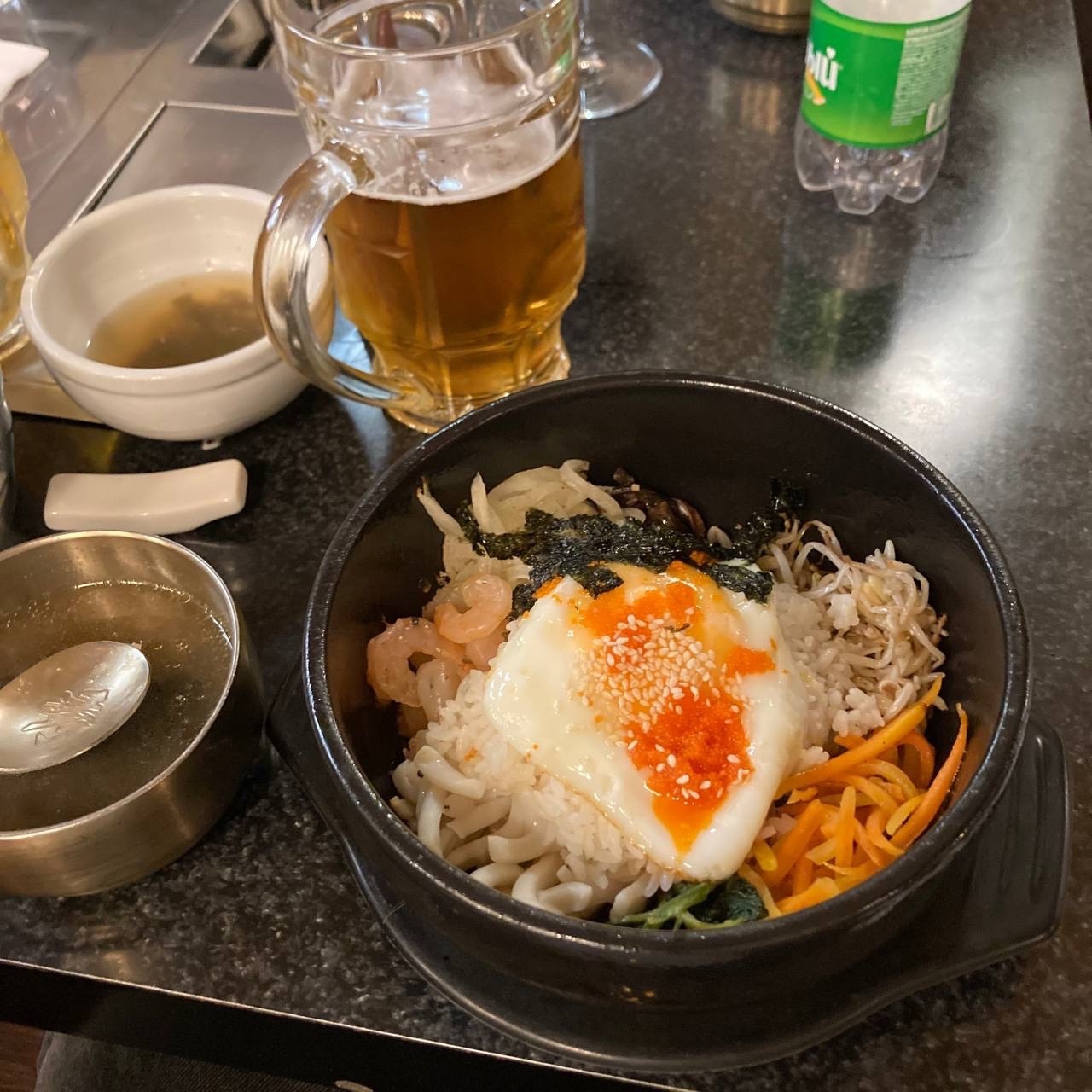 Мы посетили один из самых известных ресторанов острова «Пак Дегам». Там можно попробовать аутентичную корейскую кухню. У блюд достаточно необычная подача. Мы заказали Бибим-бам с морепродуктами и Хемуль Куи.