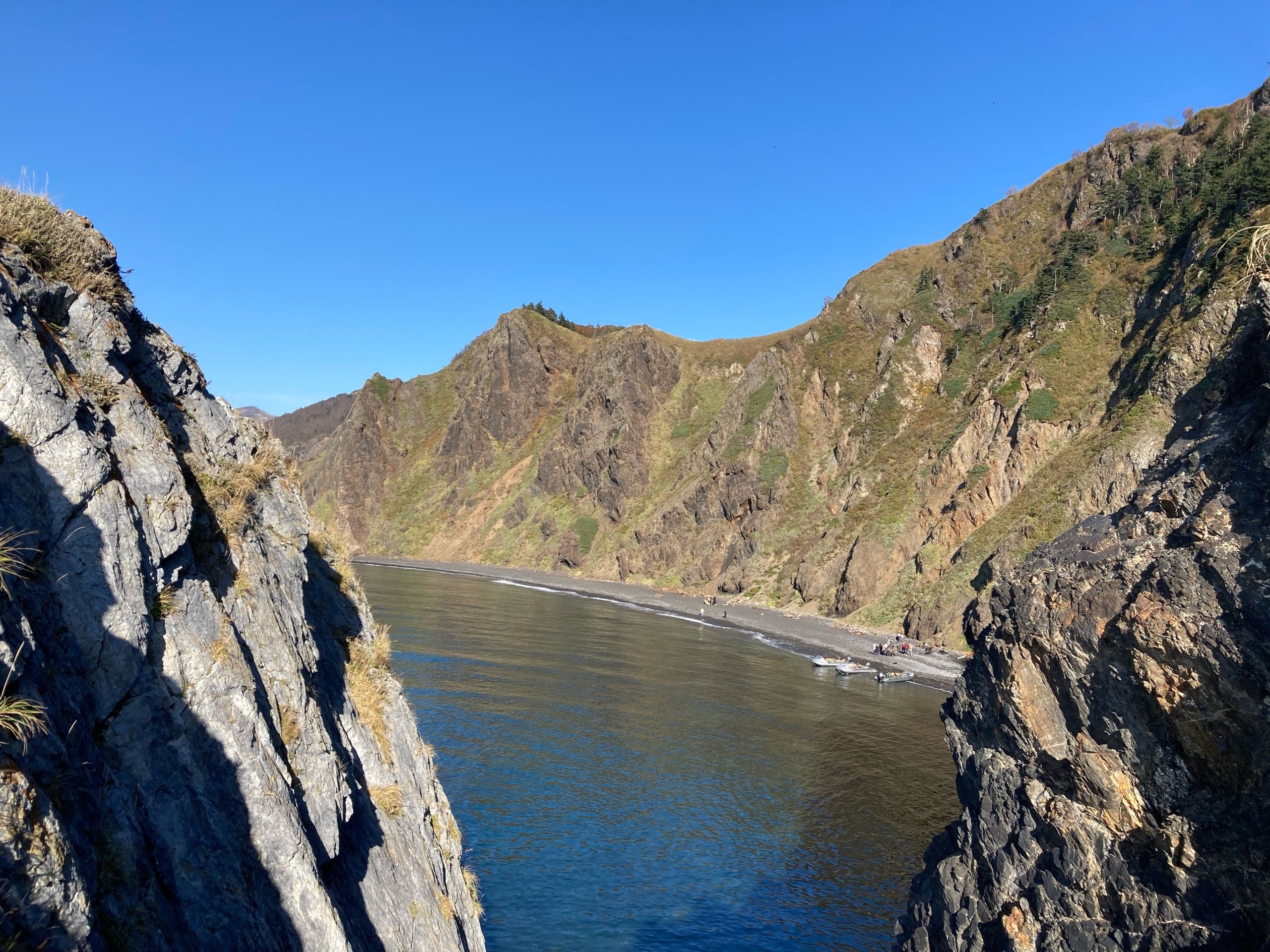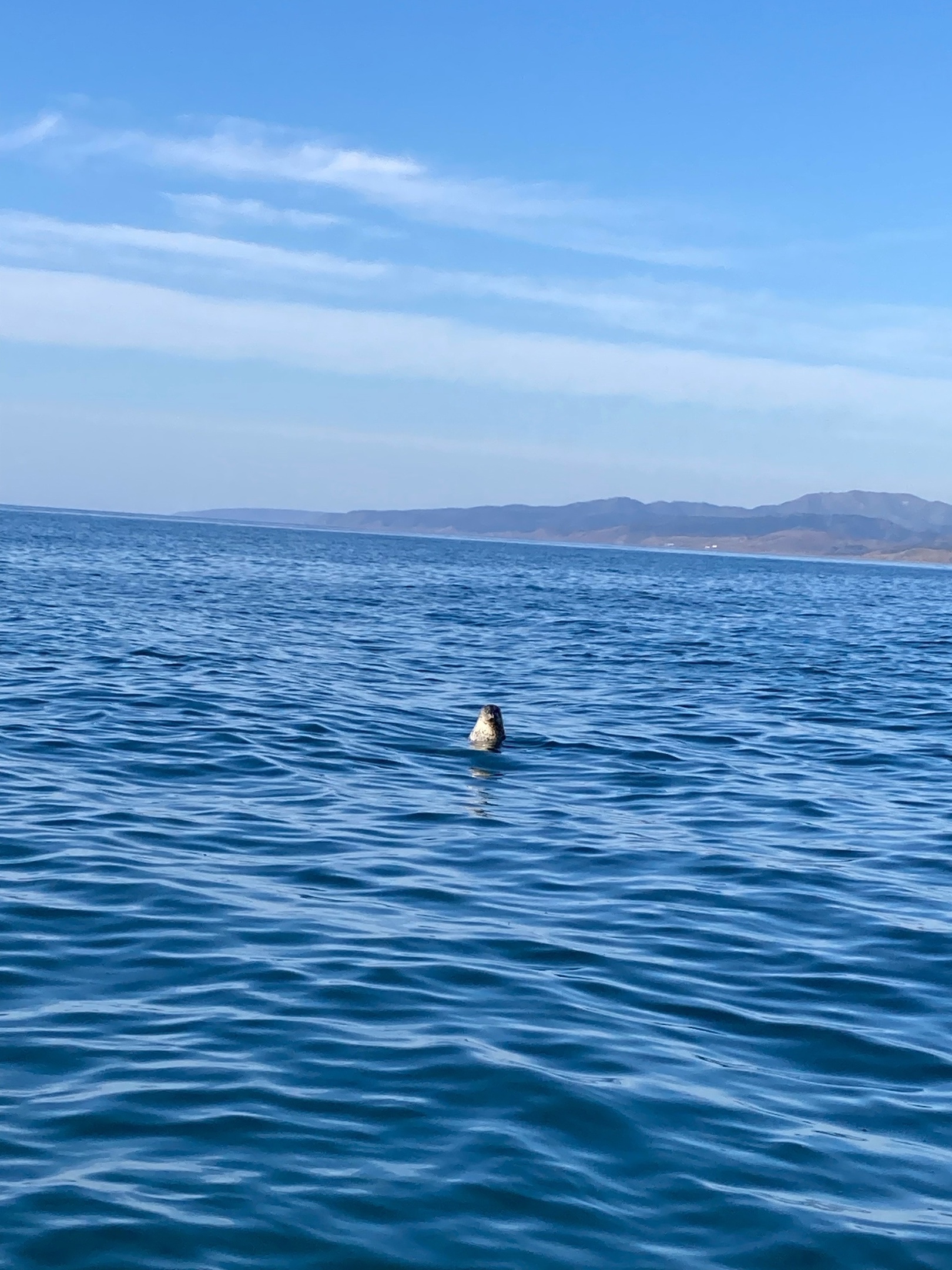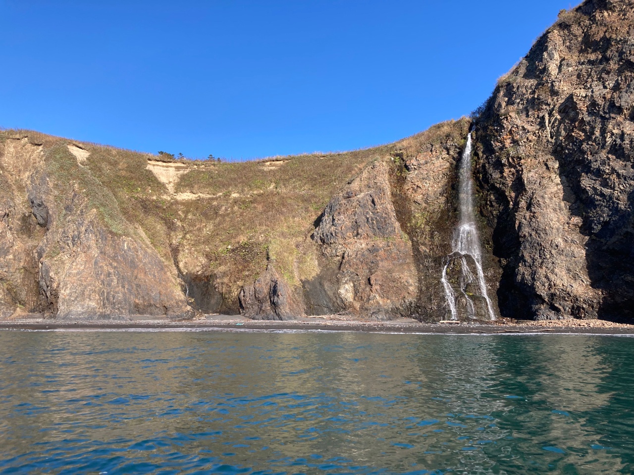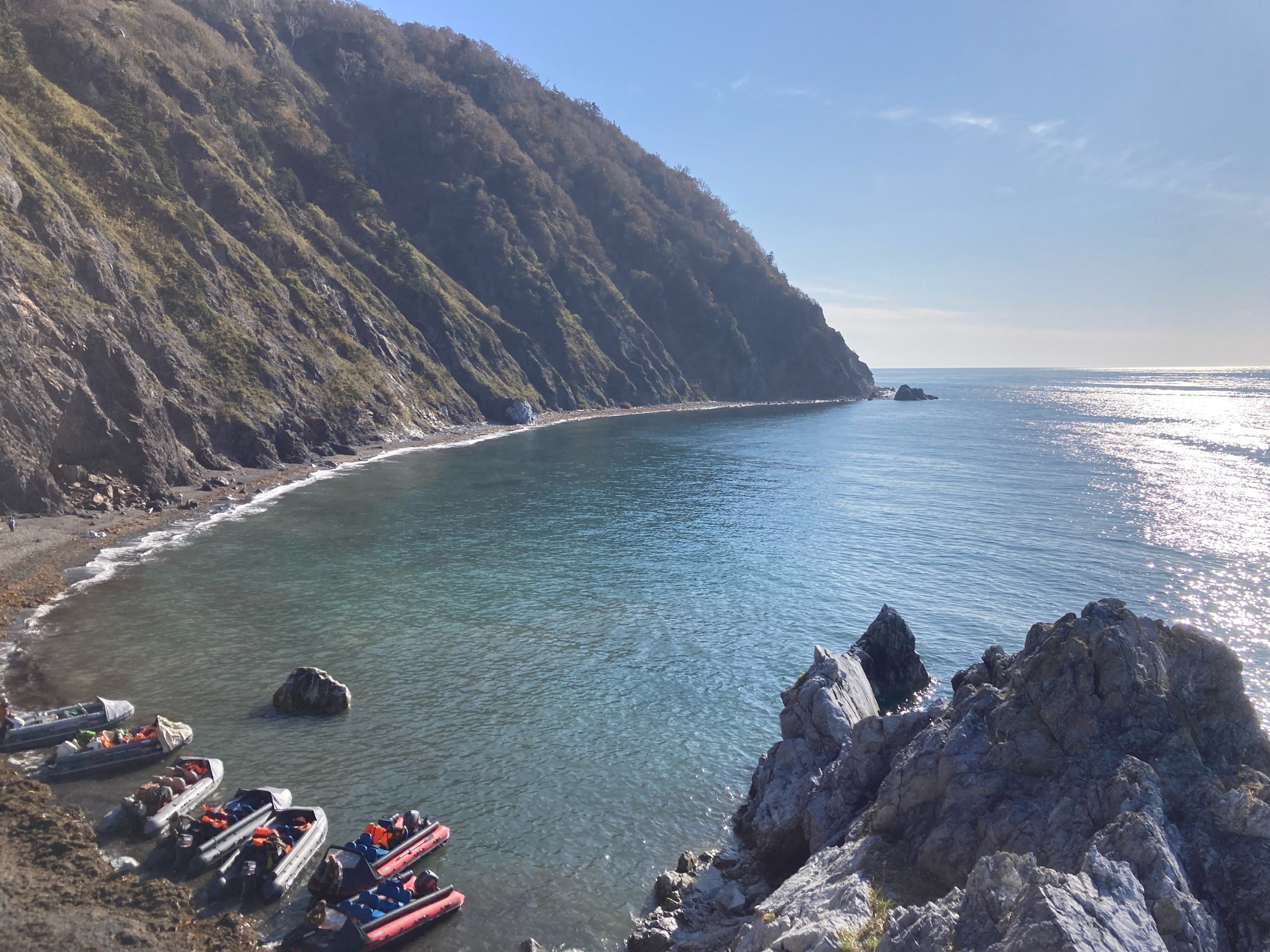 По дороге назад капитан нашей непотопляемой лодки рассказывал о местной природе и медведях, которых местные периодически видят. Его разговор прервал чей-то возглас: «Смотрите, нерпа!». Из-под толщи воды вынырнула мордочка с большими, черными глазами. Сахалинцы говорят, что нерпы любят музыку и подплывают к лодкам ближе, если включить какую-то мелодию.