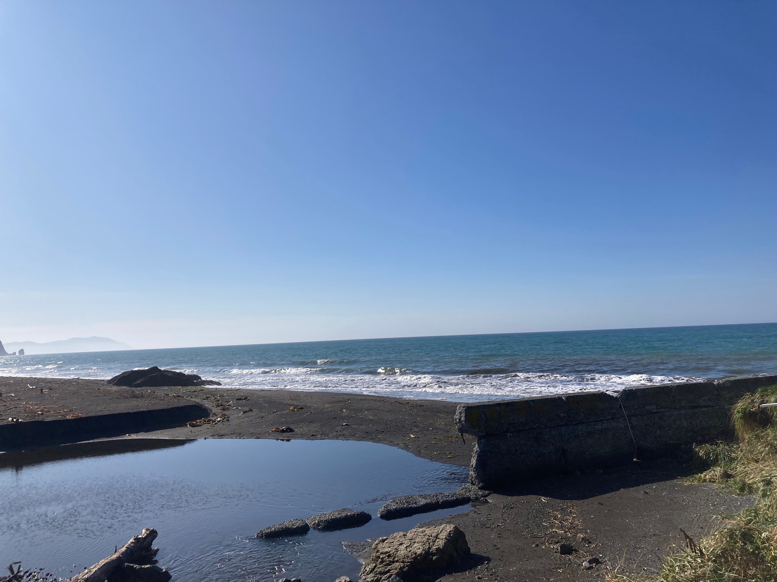 По дороге была остановка на побережье Анивского залива, где расположен единственный на много километров магазин. Правда, водитель очень просил групу не бежать туда, так как в нем работает одна продавщица, и мы можем застрять тут надолго, а впереди нас ждет самое интересное.