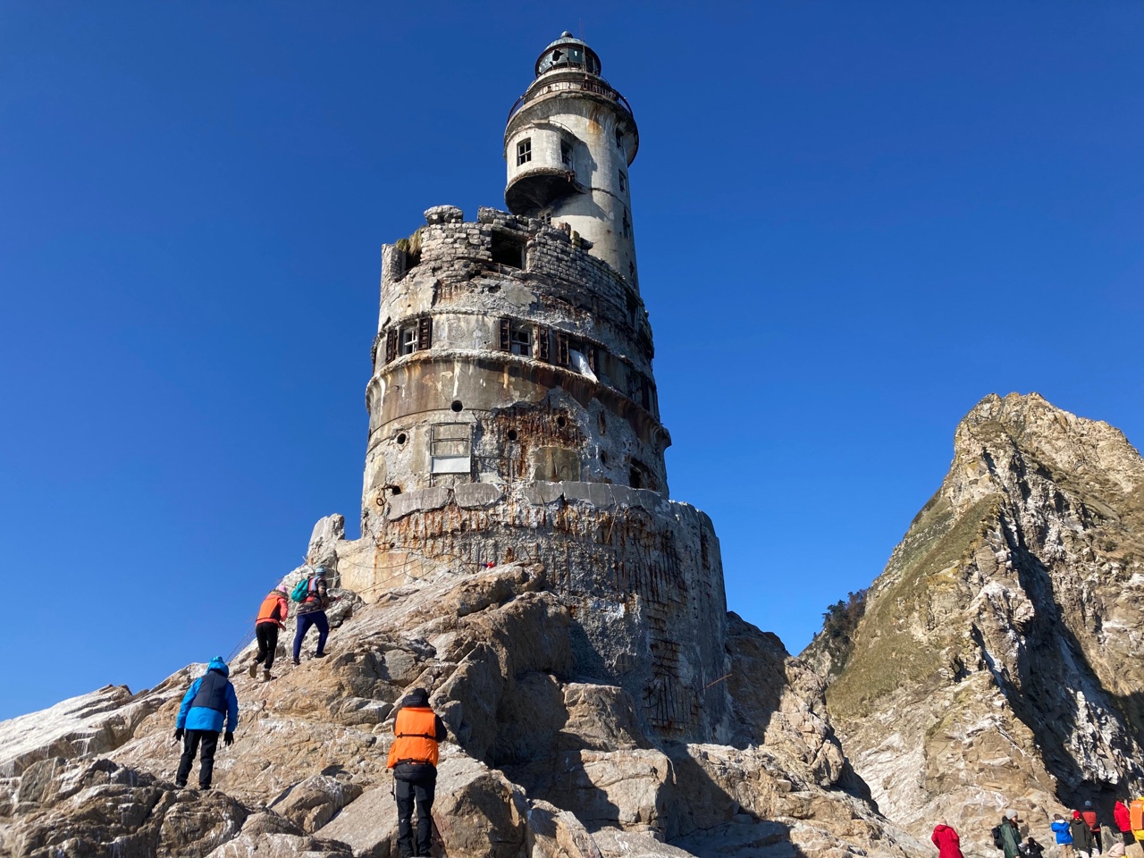 Ввизитная карточка Сахалина и дом чаек. Это все о нем, маяке-призраке Анива, построенном в 1939 году по проекту японского инженера Миуры Синобу. Но все эти довольно красноречивые названия никогда не смогут передать тех эмоций, которые испытали 12 пассажиров лодки под командованием Анатолия.