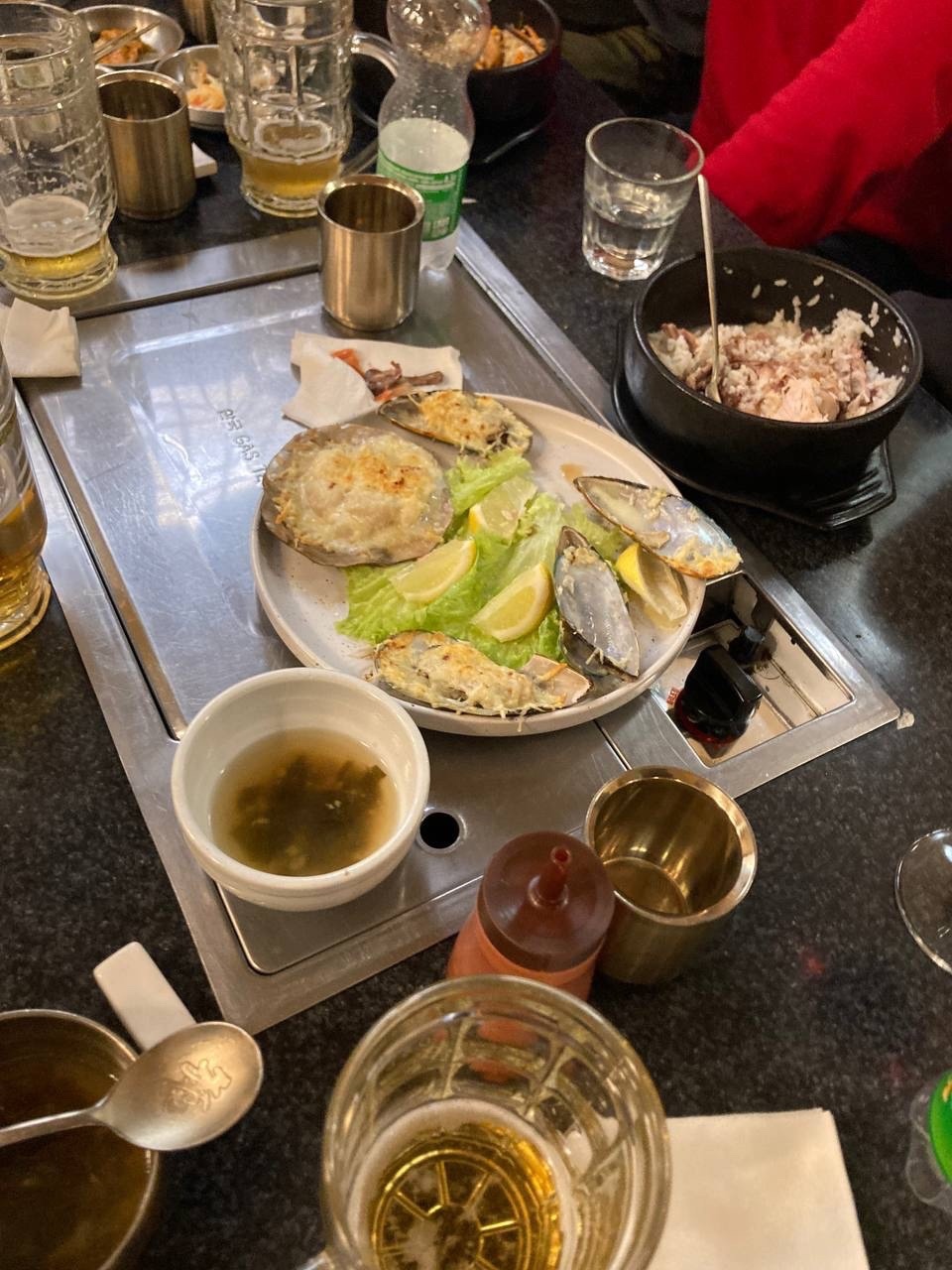 Хемуль Куи - тарелка с мидиями под сыром, одна из ракушек была с гребешком. Пока мы доели большую порцию бибим-бама, они уже остыли, но все равно были вкусными и свежими.