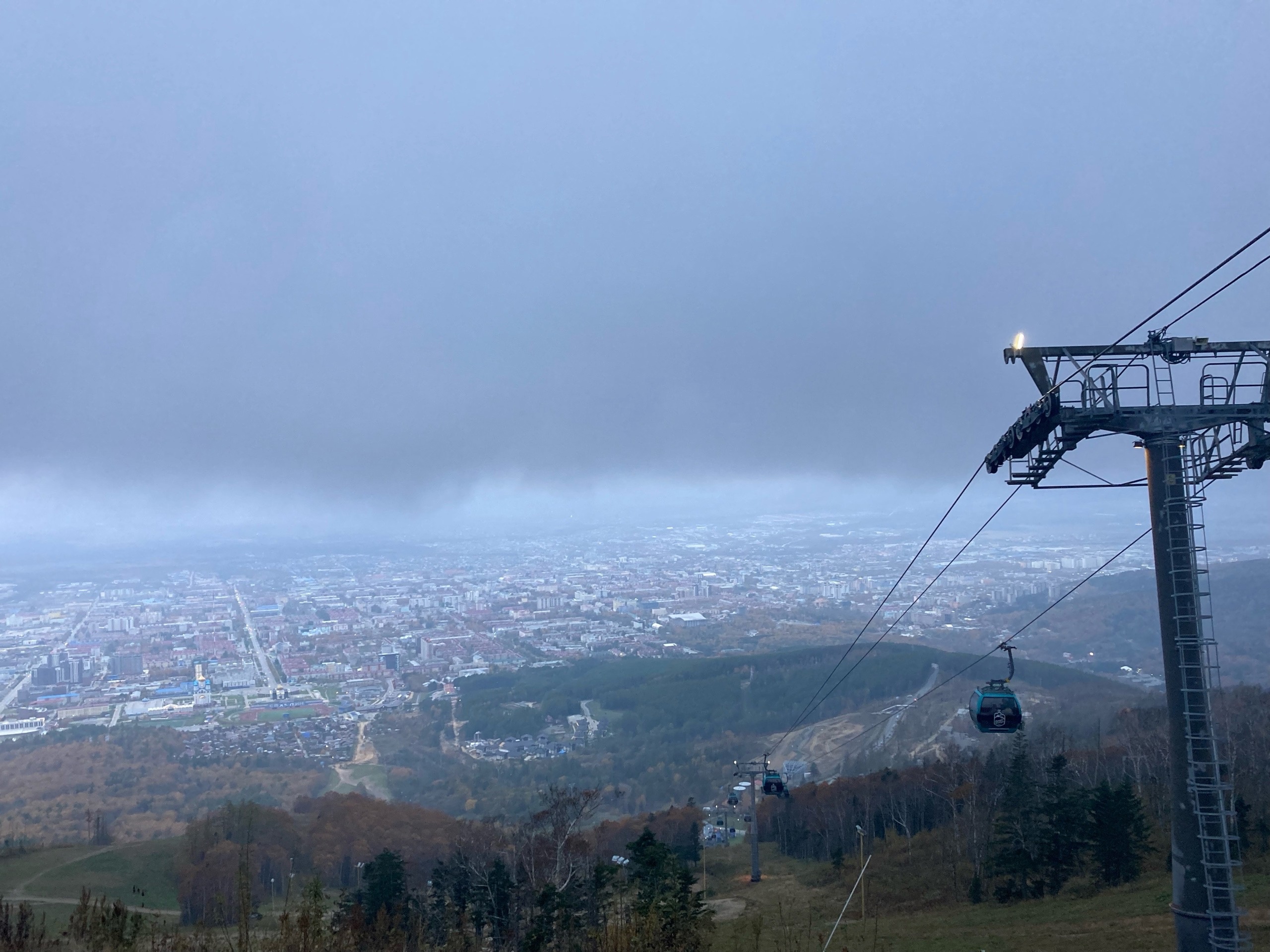 Разовый подъем обойдется вам в 170 рублей, но для полноты картины гостям предлагают приобрести абонементы – 3 часа за 900 рублей, 5 часов за 1100. До смотровой площадки мы добирались по гандольно-кресельной канатной дороге. Персонал рассказал, что она признана одной из самых быстрых в мире.