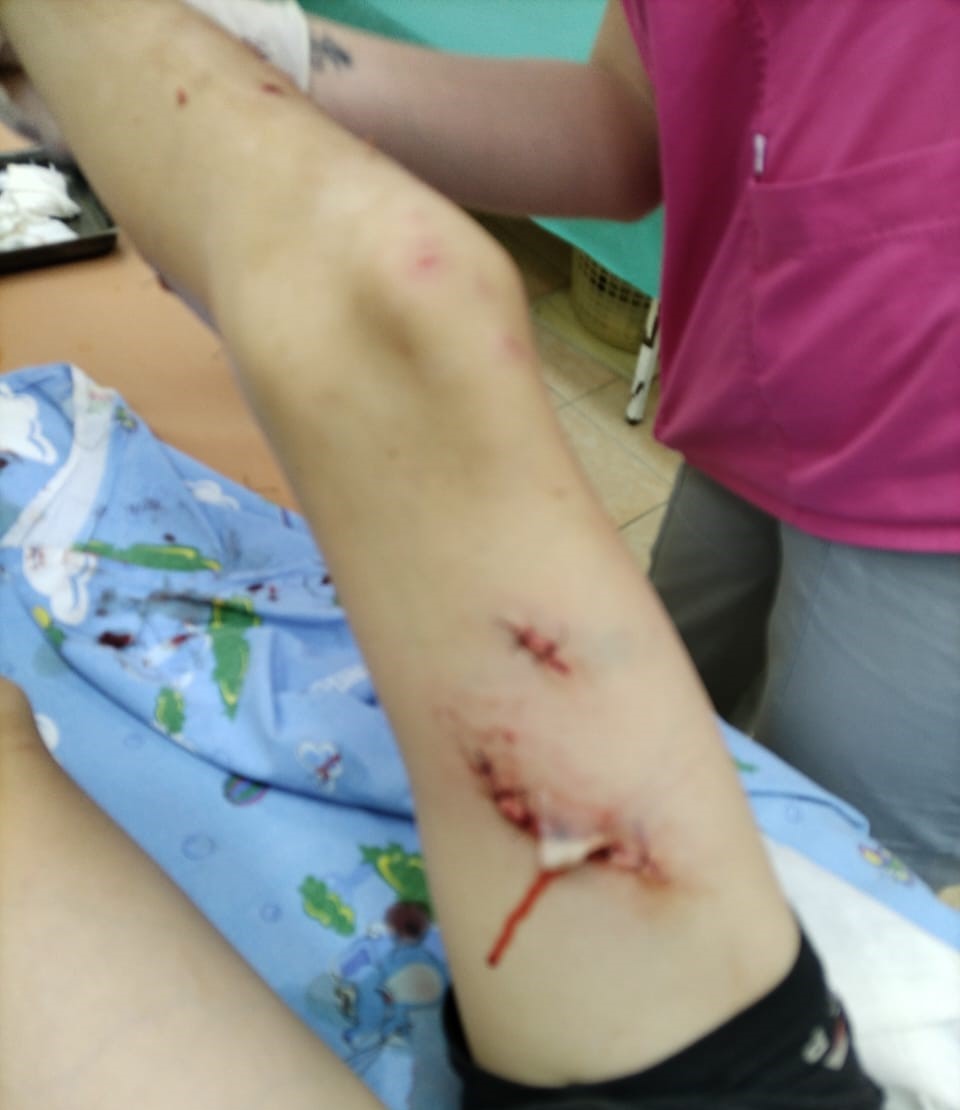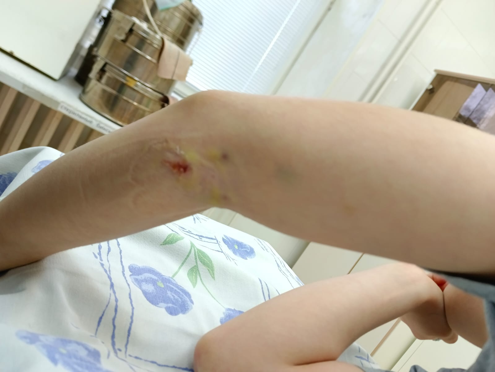 Сегодня дочке сделали очередную привику, всего их будет около семи. Проводят курс антирабической вакцинации (против бешенства - прим.ред.). Диагноз: множественные укусы, раны левой нижней конечности, левого предплечья.
