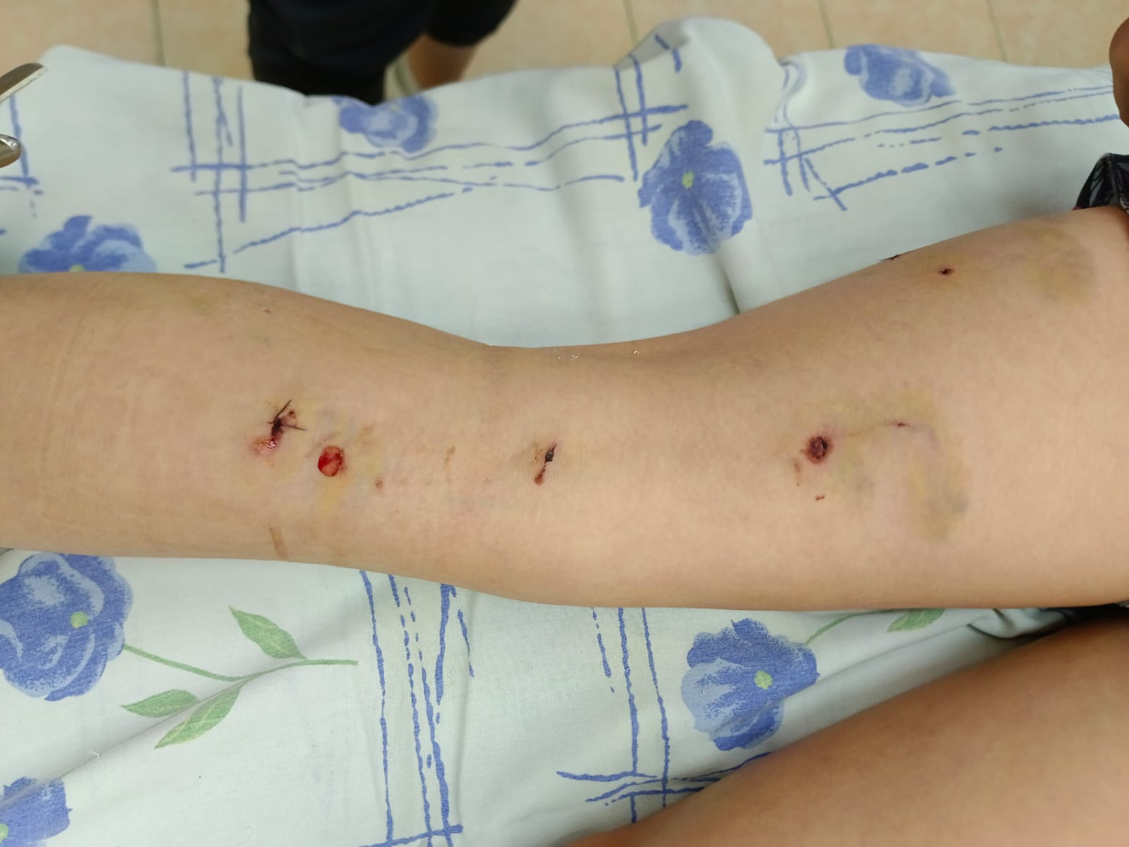 Раны на ноге девочки местами настолько глубокие, что потребовалось накладывать швы.
