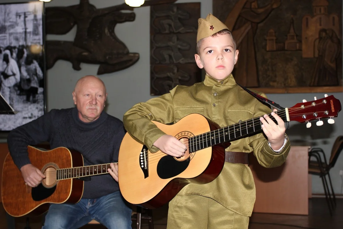 В начале «Тёмную ночь» под гитару поёт маленький калужанин в солдатской форме Савва. Алёше Суслову во время войны было примерно столько же лет.