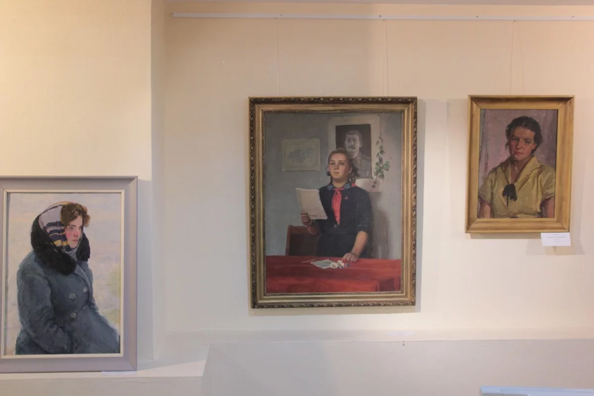 Этот портрет был написан в конце ХХ века неизвестным художником, а потом его порвали и уже собирались отнести на помойку. Сейчас он представлен на выставке, хотя это работа и не относится к 1950-м годам ХХ века, она отлично вписалась в концепцию выставки.