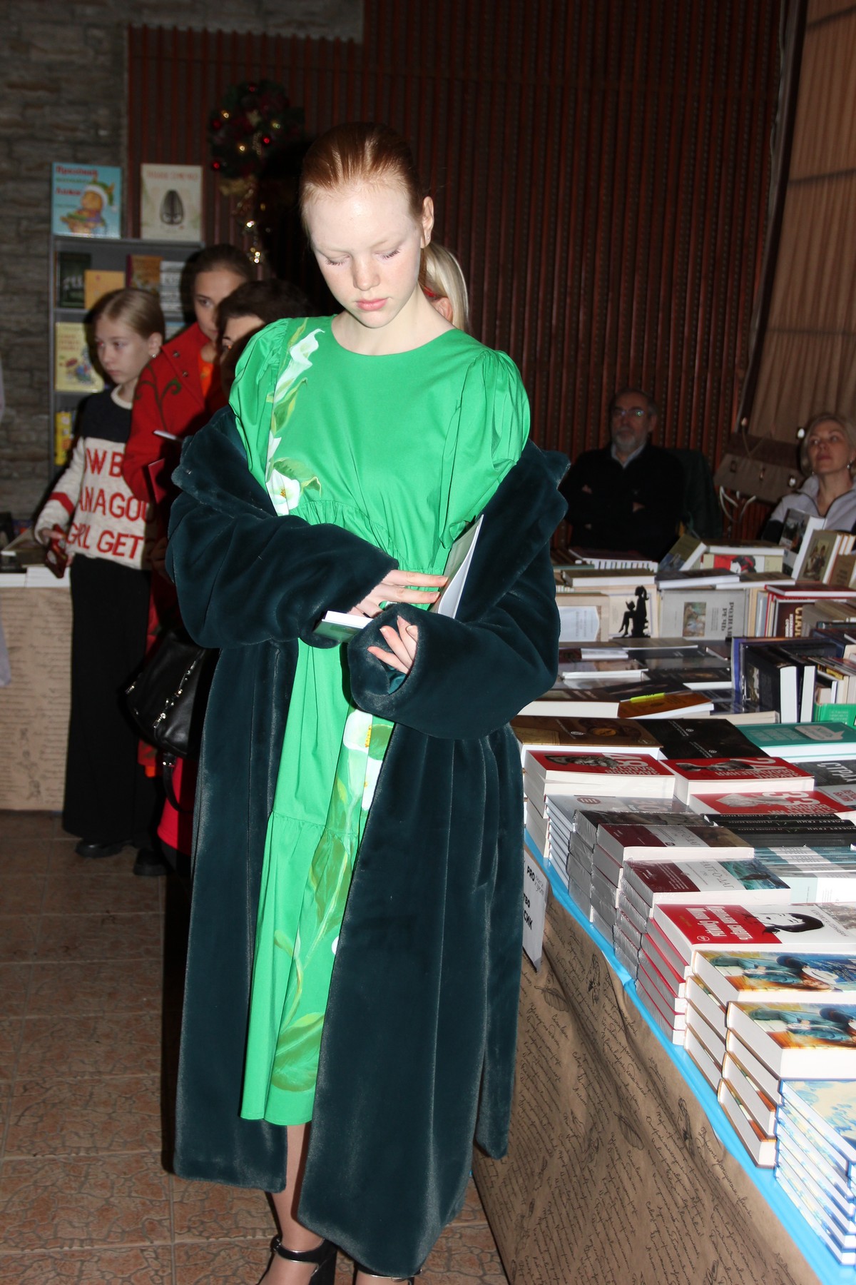 Показ был, конечно, с книжной тематикой. Модели – обычные калужанки - проходили между книжных рядов, останавливались, листали книги и замирали с книгой в руке.
