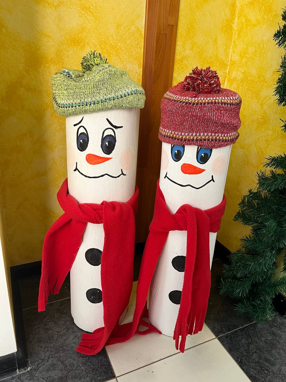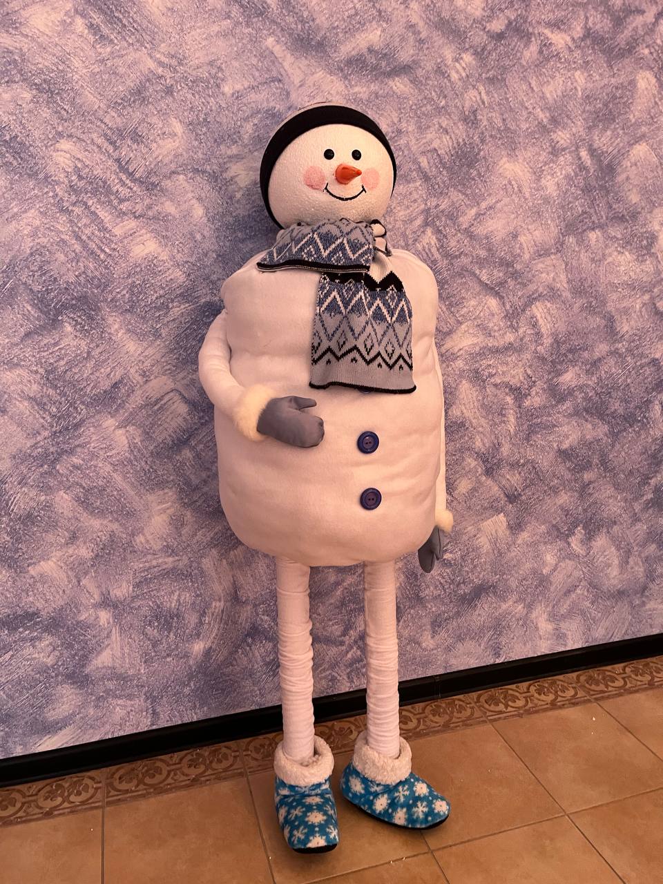 Здесь же компанию вам составят большие снеговики, любители зимних забав: у кого-то в руках лыжи, кто-то везет с собой санки.
