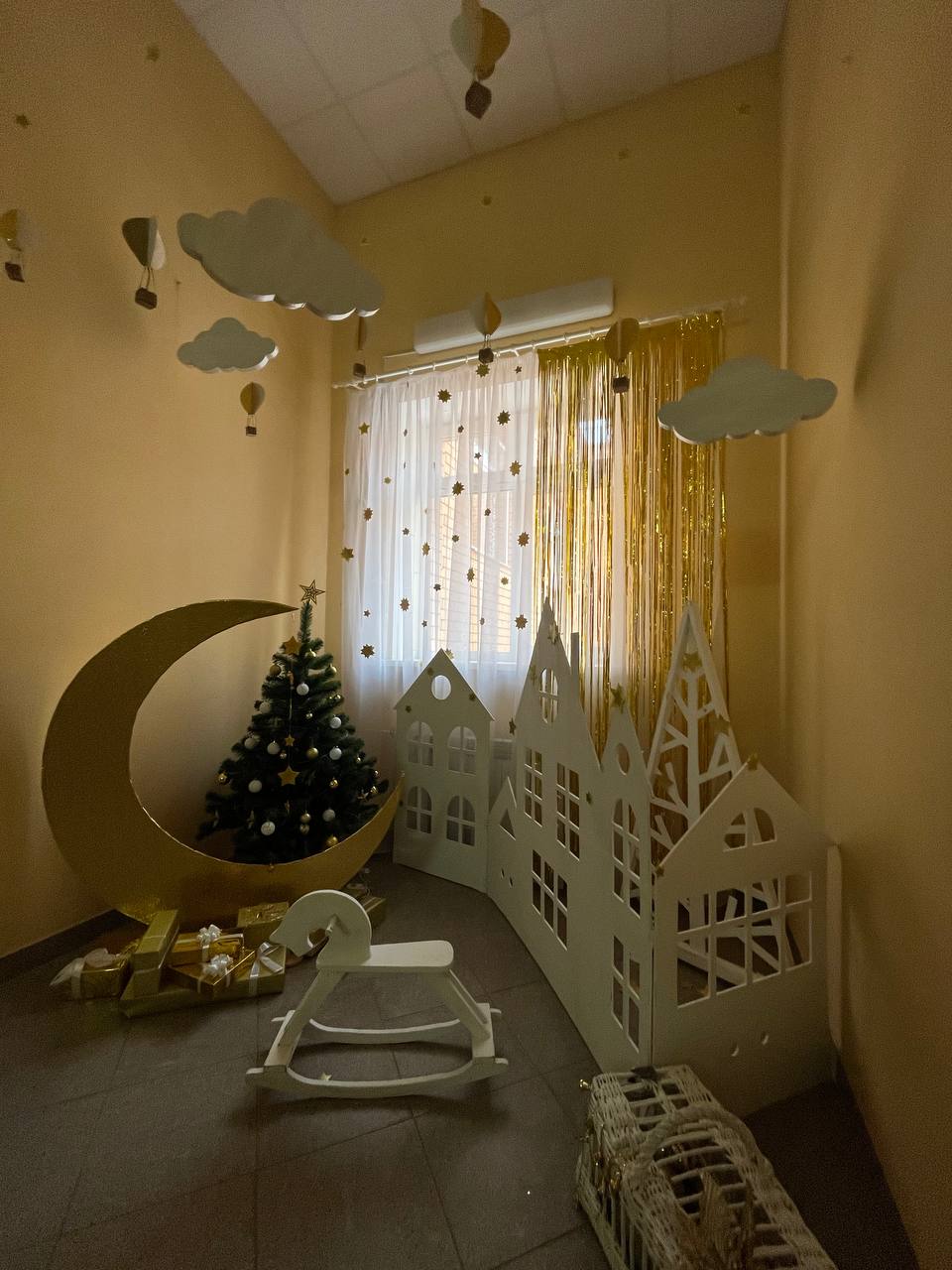 Но главной особенностью стал собственный дом Деда Мороза! В этом году на втором этаже, у актового зала, творческая команда создала отдельное помещение для Деда Мороза с дверцей такого размера, чтобы было удобно входить воспитанникам детского сада. Ведь именно они приходят в гости к дедушке и рассказывают ему стихи.