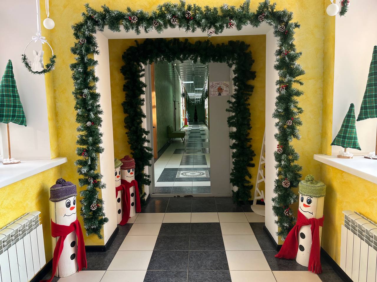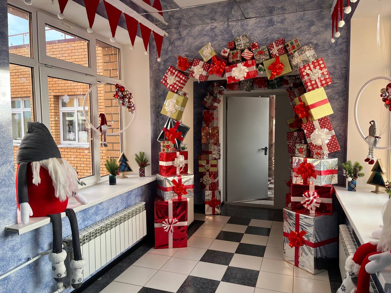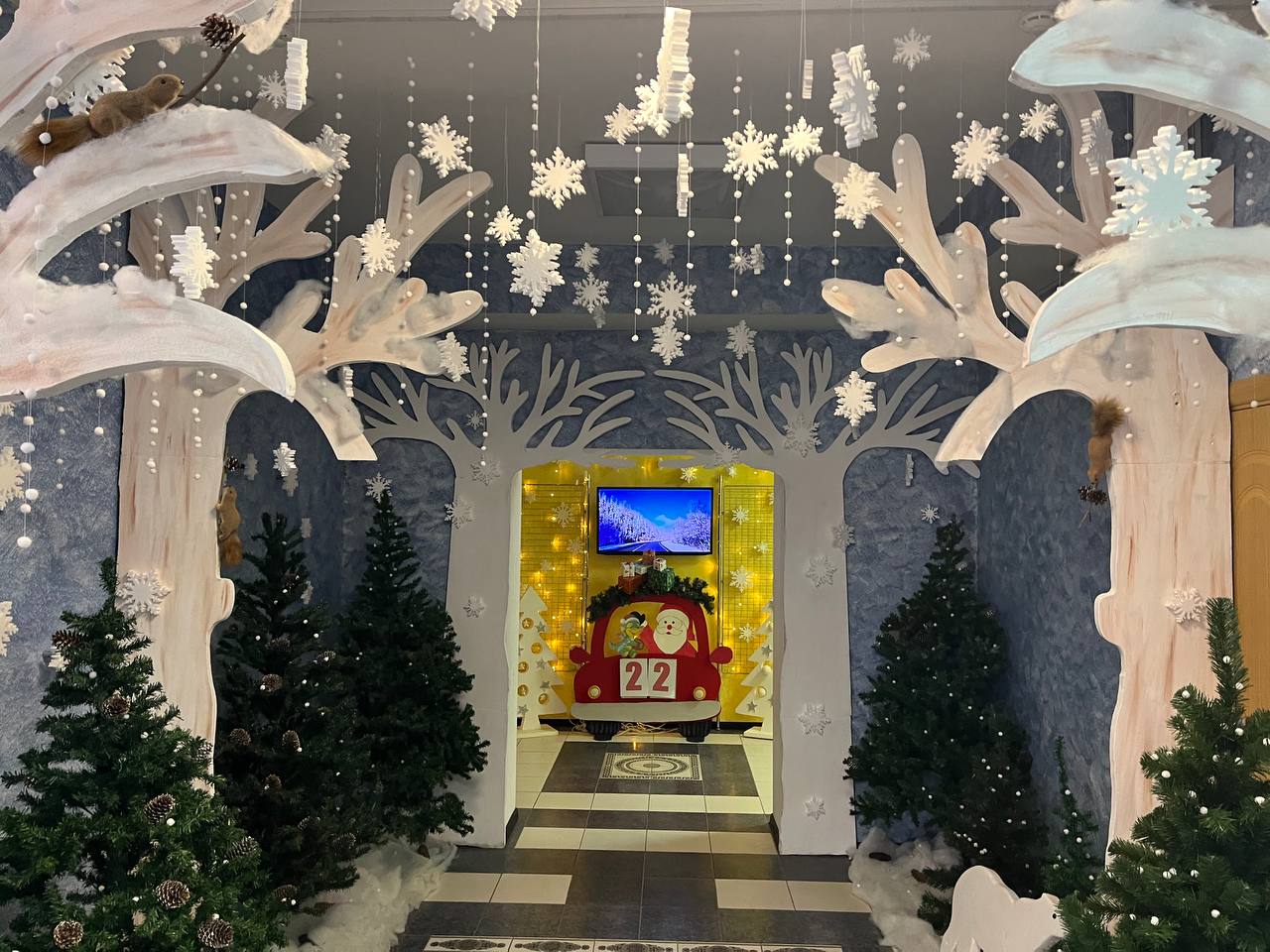 В этом году у нас, скажем так, сохранилась старая фишка. В центральном холе в том году у нас был сказочный зимний лес. Наши дети получили столько положительных эмоций, так им он полюбился, столько было восторга у родителей, что в этом году мы сохранили его. Он также встречает гостей.