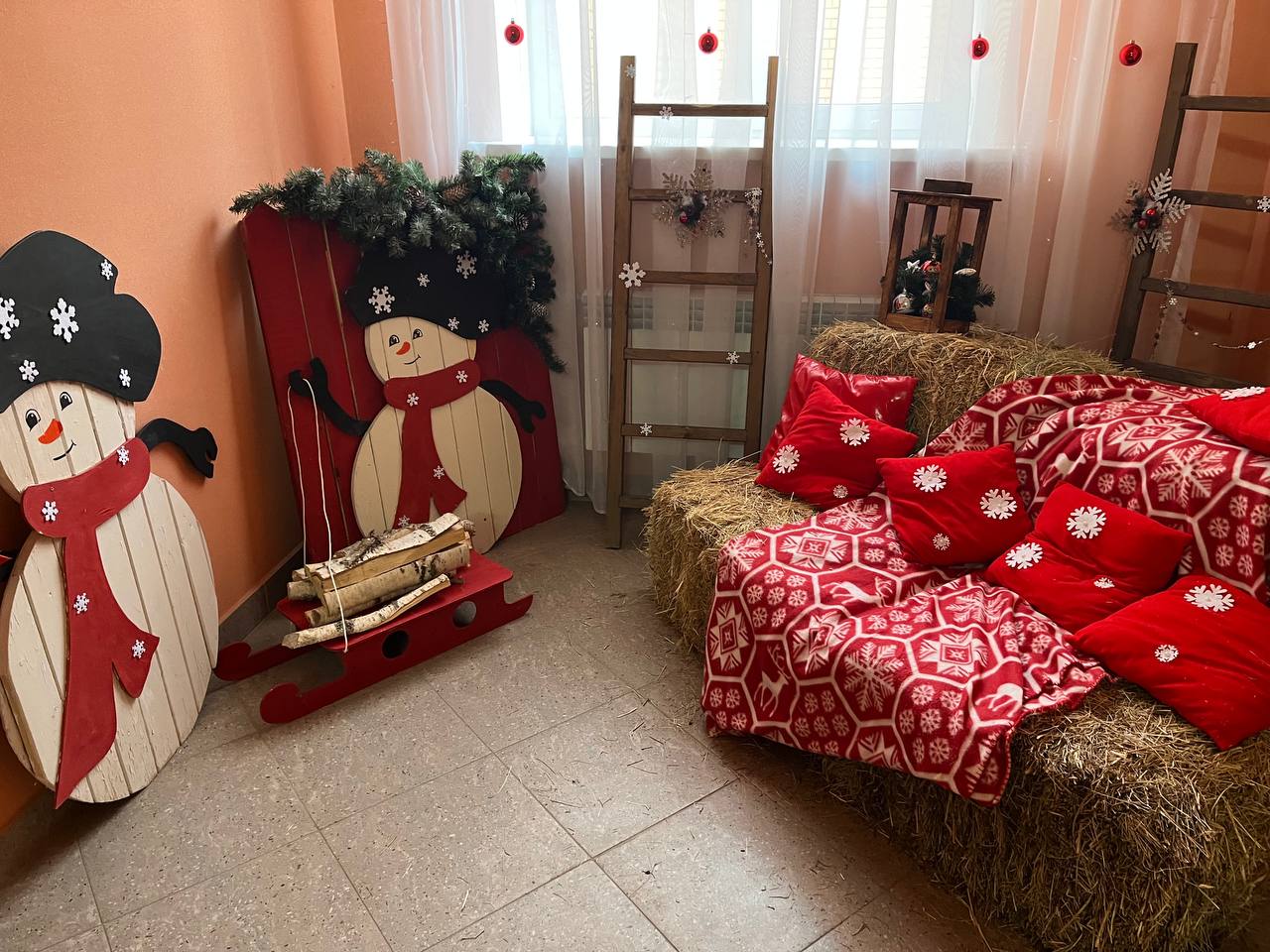 Но новое тоже есть – мы сделали большую избу Деда Мороза, где стоит теплый камин и новогодняя елка, которую украшали наши дети, и трон деда Мороза.