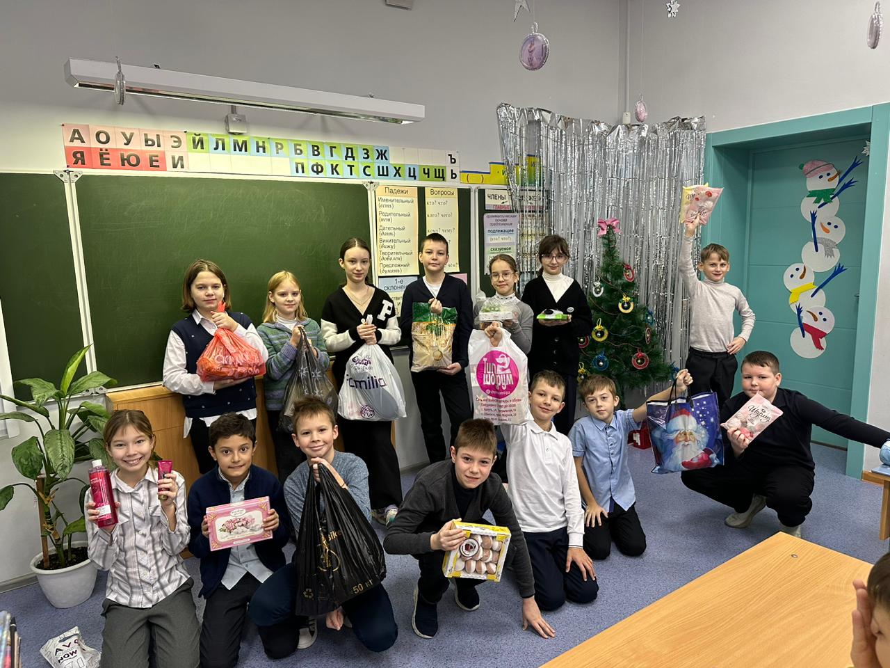 4 «Б» класс нового корпуса школы № 13 собрал новогодние подарки для бабушек и дедушек.