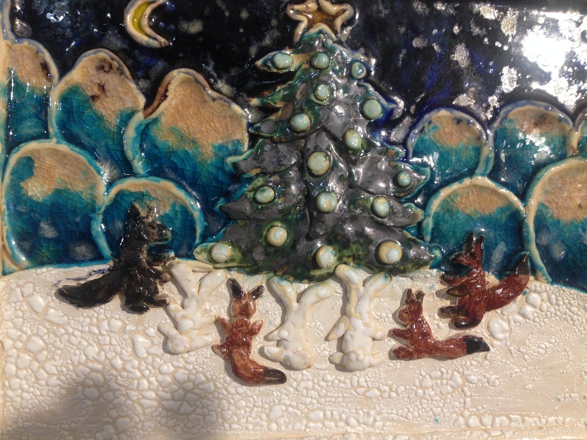 Рельеф «Рождественская ночь». Валерия Сорокина, 9 лет, Белая глина, стекло, глазури.Судия татьяны Астаховой.