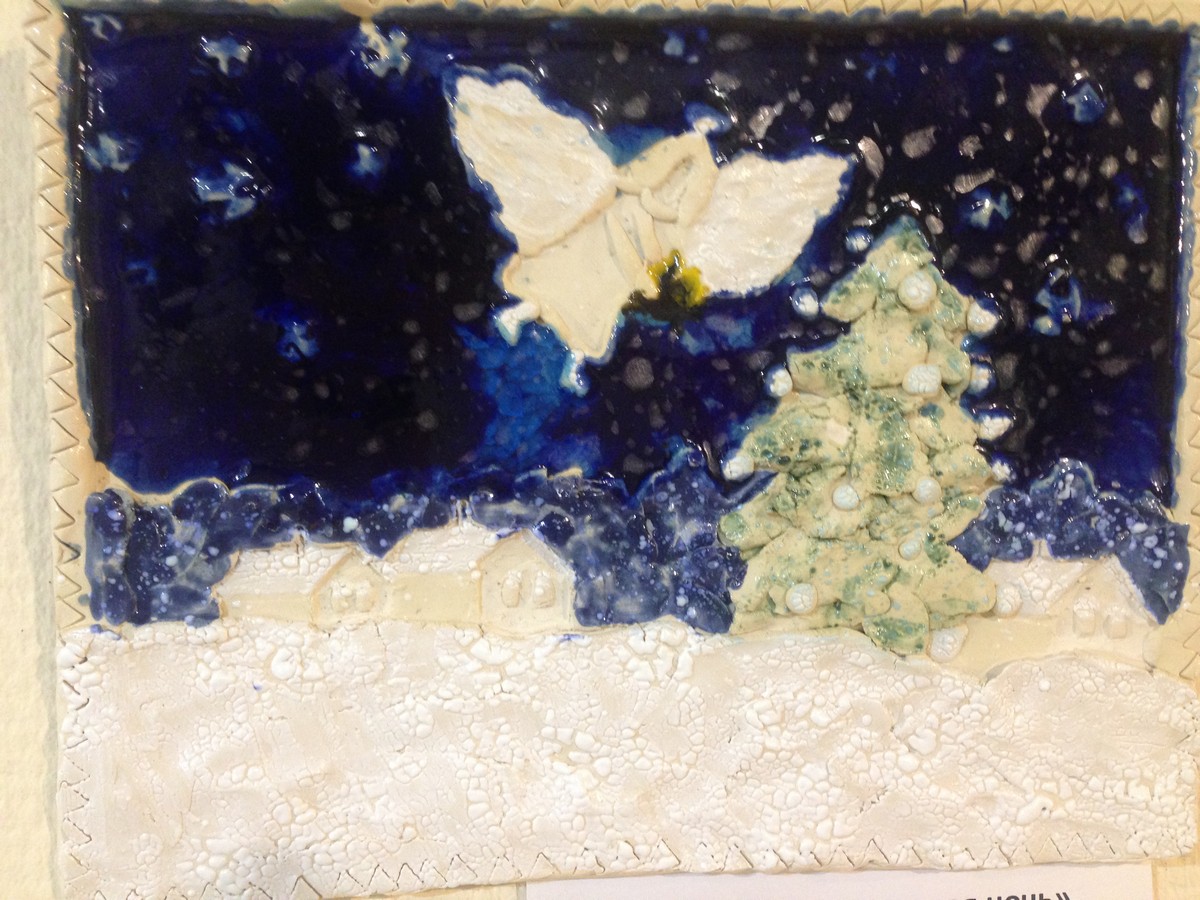 Рельеф «Рождественская ночь». Валерия Сорокина, 9 лет, Белая глина, стекло, глазури.Судия татьяны Астаховой.