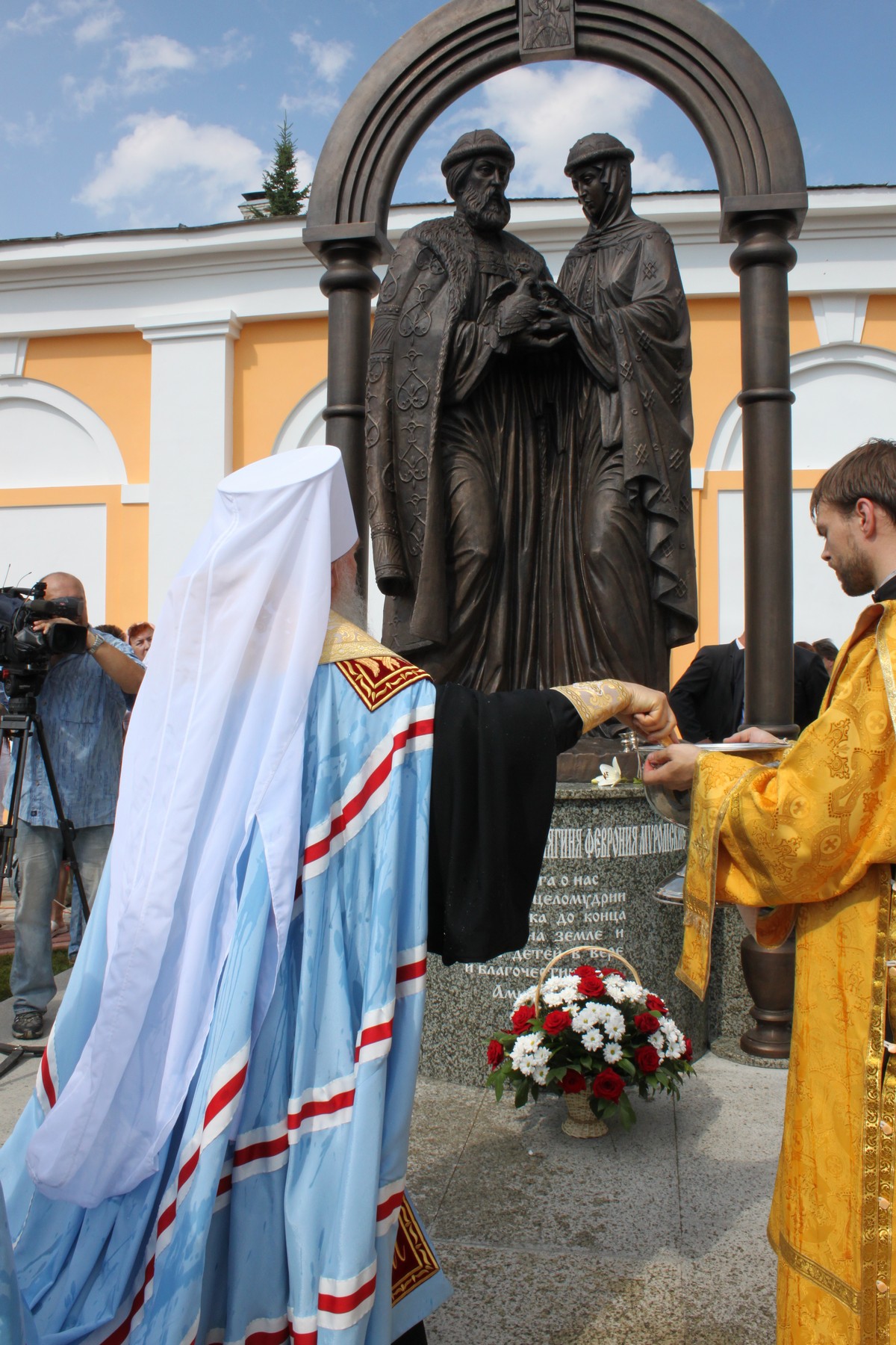 Памятник в честь семейных ценностей открыли в сквере у Никитского храма. Монумент установили в честь Петра и Февронии Муромских, покровителей семьи и брака, поэтому после установки памятника в Калуге стали ожидать улучшения демографической ситуации. Авторы - скульптор Константин Чернявский и архитектор Ольга Кравченко из Калуги. Их эскиз памятника был выбран из 13 вариантов скульптур.