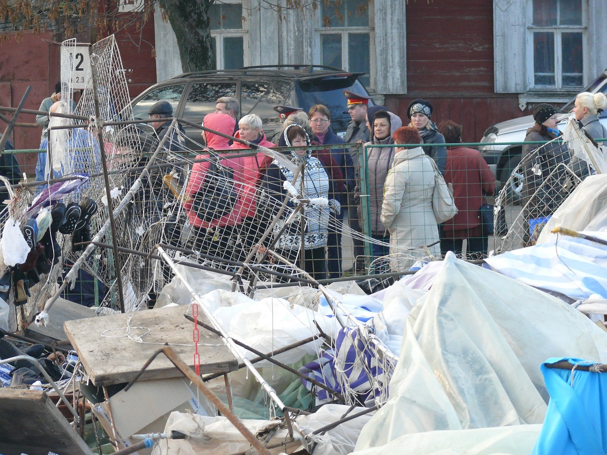 15 октября, с полуночи до четырех утра вещевой мини-рынок, известный в Калуге как «белорусский», был разрушен. Сразу после погрома, выполненного в традиционном жанре лихих 90-х, у забора мини-рынка собралась толпа работников и предпринимателей, чьи товары лежали в куче мусора: 77 из них сразу написали заявления о порче инвентаря. По факту заявлений полиция начала проверки.