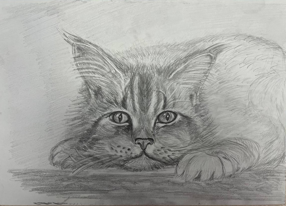 — Все началось вот за этим столом, – рассказывает калужанка. – В тот день работа закончилась, уже никого не было, но я частенько остаюсь подольше, доделываю дела. Работая за компьютером, увидела рекламу онлайн школы рисования, мастер-класс карандашной графики. Мне стало интересно, я перешла по ссылке. Первый раз посидела, за урок нарисовала кошечку, у меня получилось. В тот момент во мне что-то проснулось, почувствовала такое удовольствие!