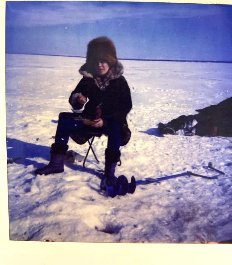 Камчатка. Татьяна Григорьевна на зимней рыбалке ловит корюшку.