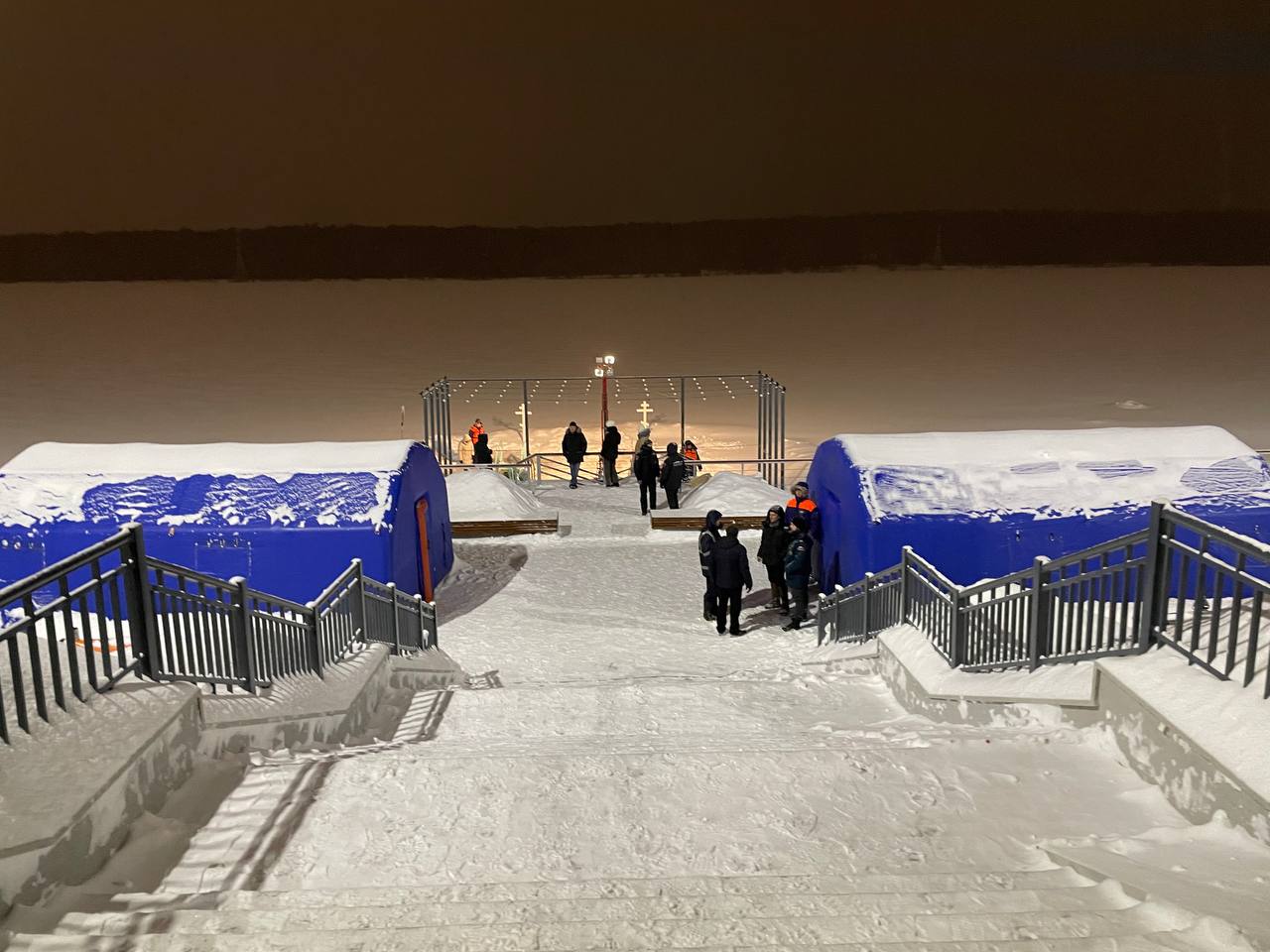 Участники могли переодеться в теплых палатках (отдельно женская и мужская) и согреться в специально оборудованном для этого пункте. К счастью, происшествий в этот светлый праздник тоже не случилось, рядом с водоемом дежурили спасатели и полицейские, а неподалеку находилась скорая помощь.