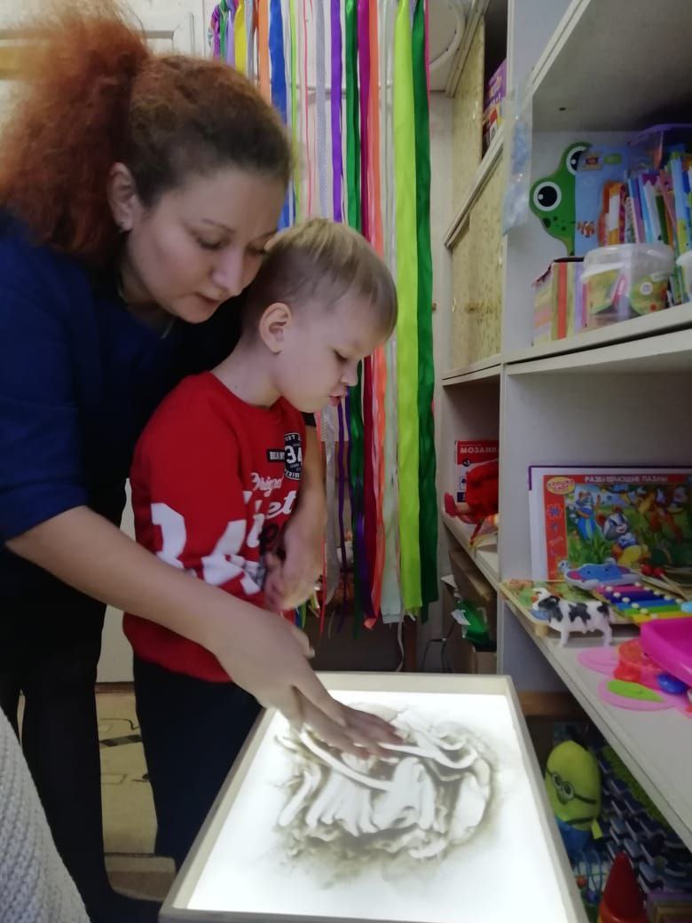 Мы с ними пальчиком проводим дорожки по песку, когда занимаемся автоматизацией звука, дуем на песочек, рисуем буковку.