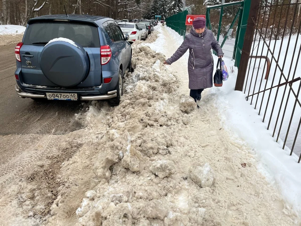 Заваленные снегом парковочные места, нечищеные тротуары и пешеходные дорожки, - дорога выматывает калужан.