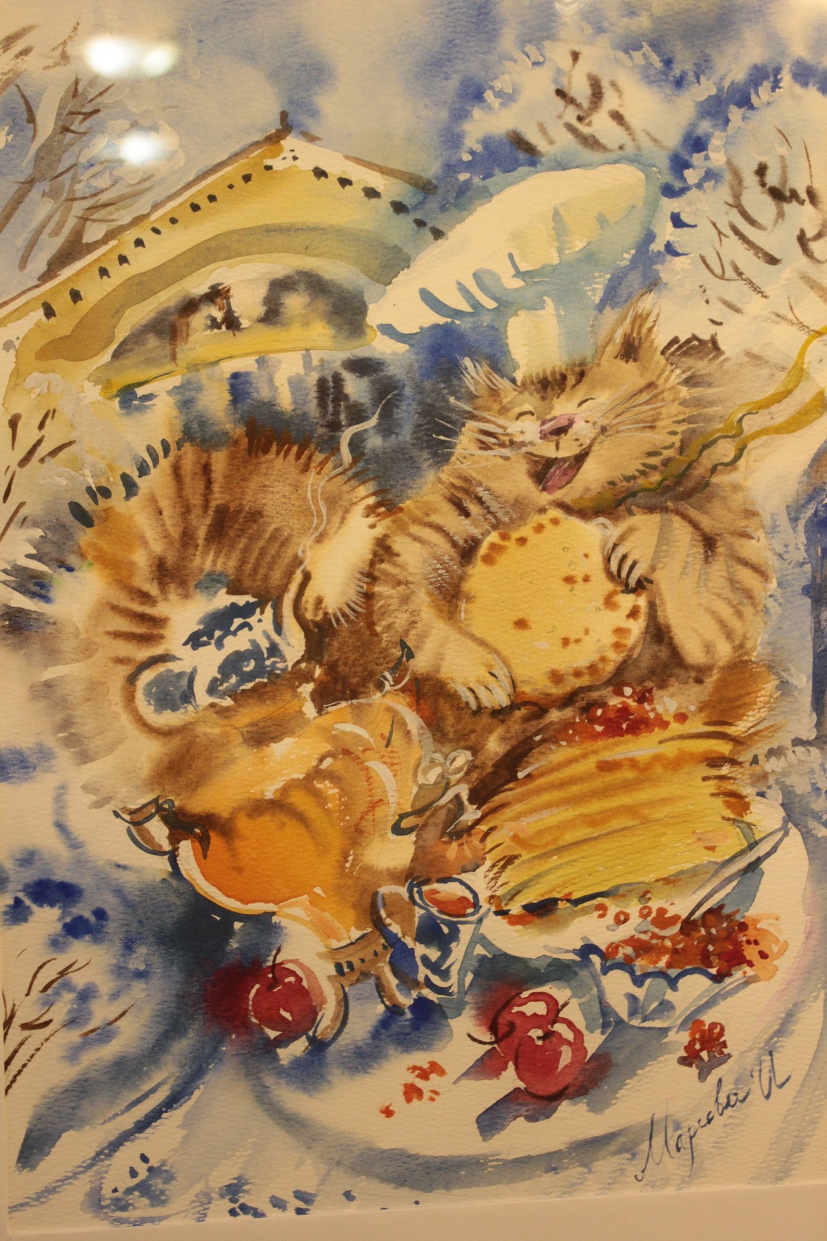 Художник Ольга Козлова устроила для детей кошачью викторину с подарком и мастер-класс. А потом гости пили чай с вкусняшками, общались с участниками выставки в теплой, дружеской обстановке.