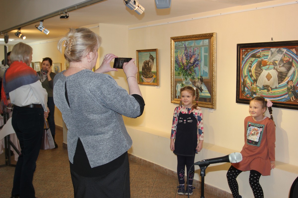 Вернисаж выставки «Формула кошки» был абсолютно кошачьим. Вечером на творческую программу КотоСтрофы собрались и дети, и взрослые, и даже собаки, которые вели себя очень культурно, ни разу не подав голоса.