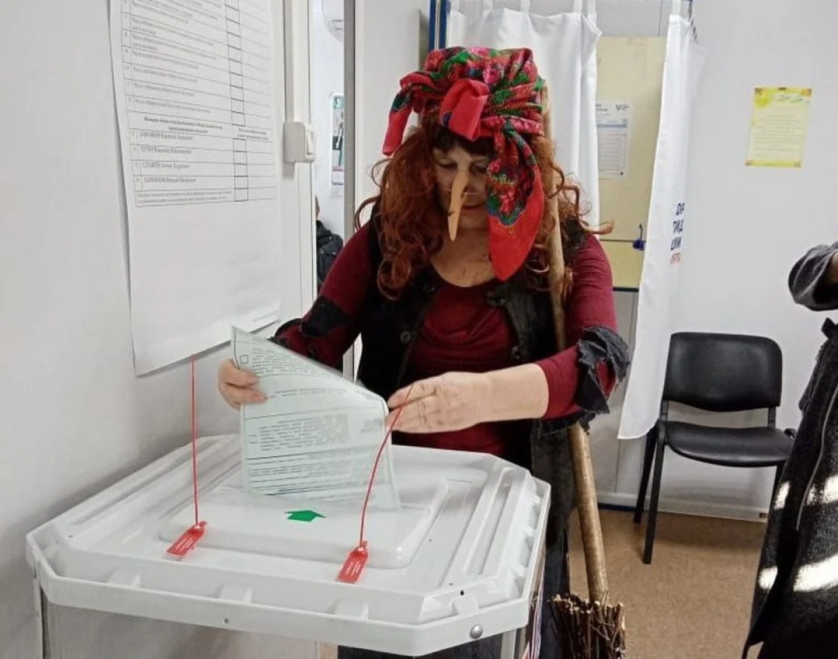 Во время прошедшего голосования не обошлось и без креатива со стороны жителей Калужской области. В Ферзиковском районе на избирательный участок пришла Баба Яга.