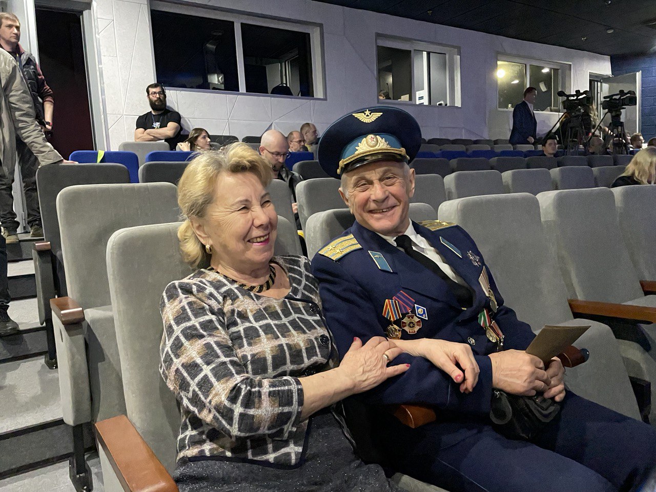 Нам удалось встретиться с ветераном космодрома «Байконур» Александром Трусевичем. Он пришел в сопровождении жены Марины Исаевны. Александр Игоревич, он же подполковник ВКС и заместитель председателя Калужского городского совета ветеранов войны и труда, много рассказывал про помощь ветеранам и пригласил на несколько мероприятий, которые они организуют.