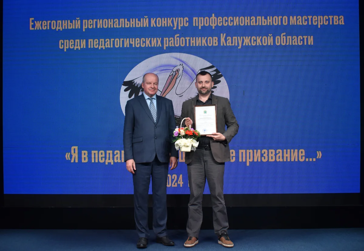 Роман Иванов занял второе место в номинации «Лучший учитель». Он приехал в Медынскую школу из Башкортостана. Он устроился работать по программе «Земский учитель» в 2022 году. Как раз в этот год в Медыни открыли новую современную школу с бассейнами и спортивными залами.