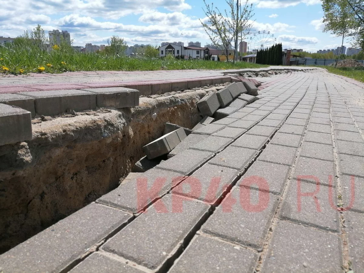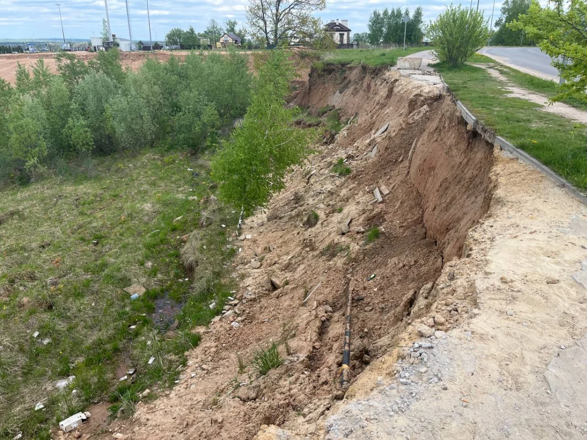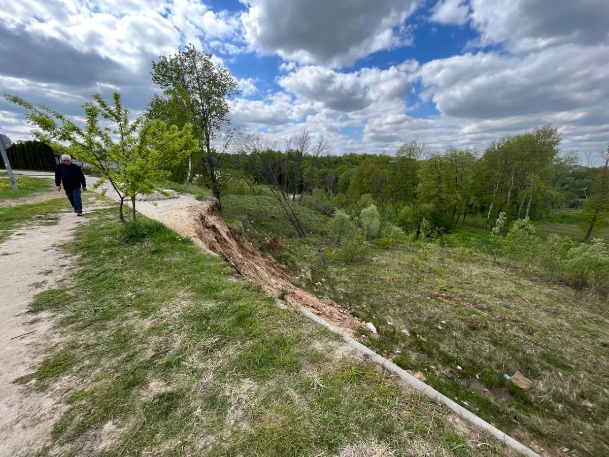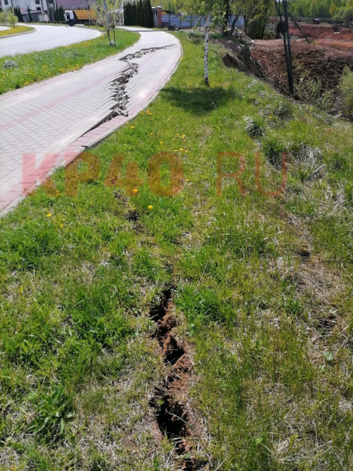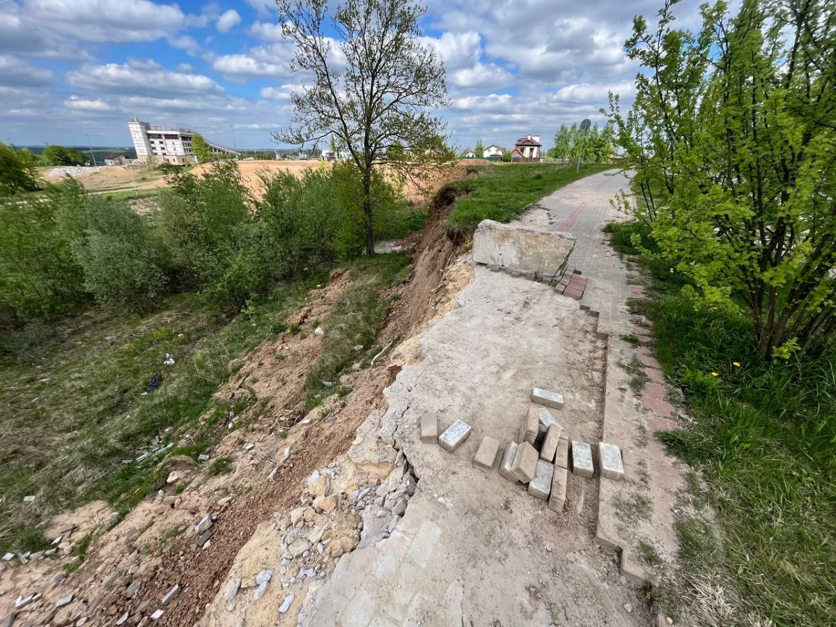 Речь идет о сползании склона вместе с тротуаром на Правобережье Калуги. Мы связались с автором поста Ольгой и расспросили о происходящем подробнее.