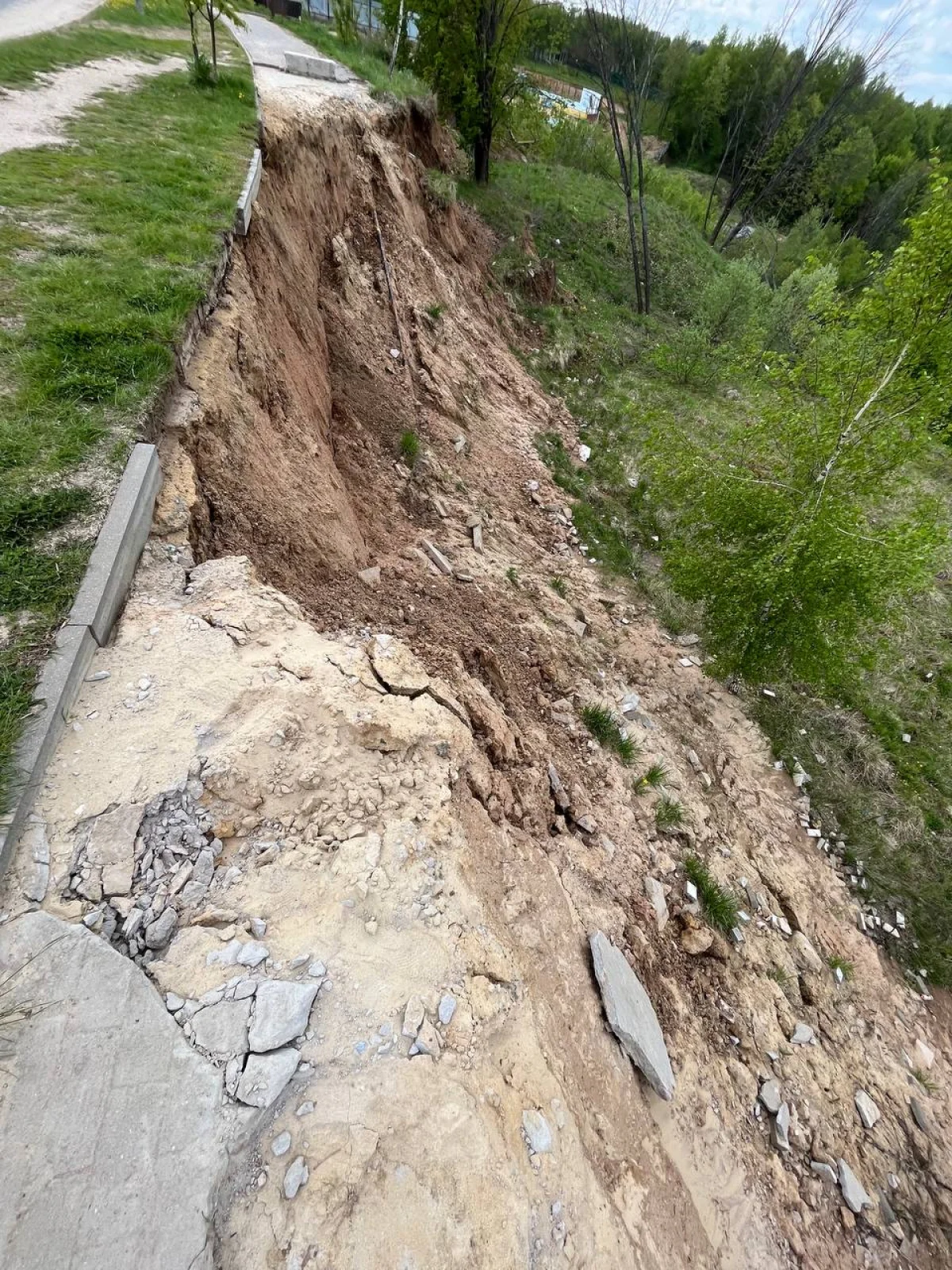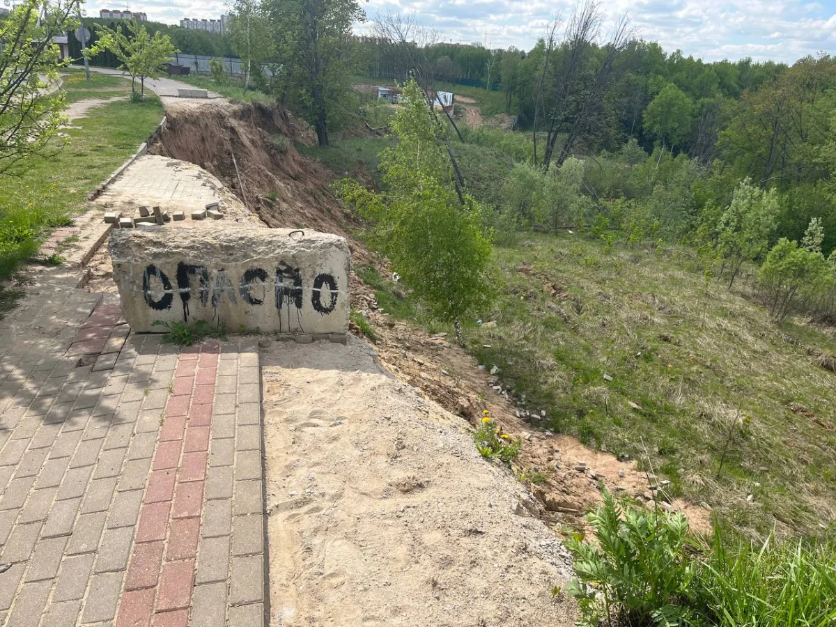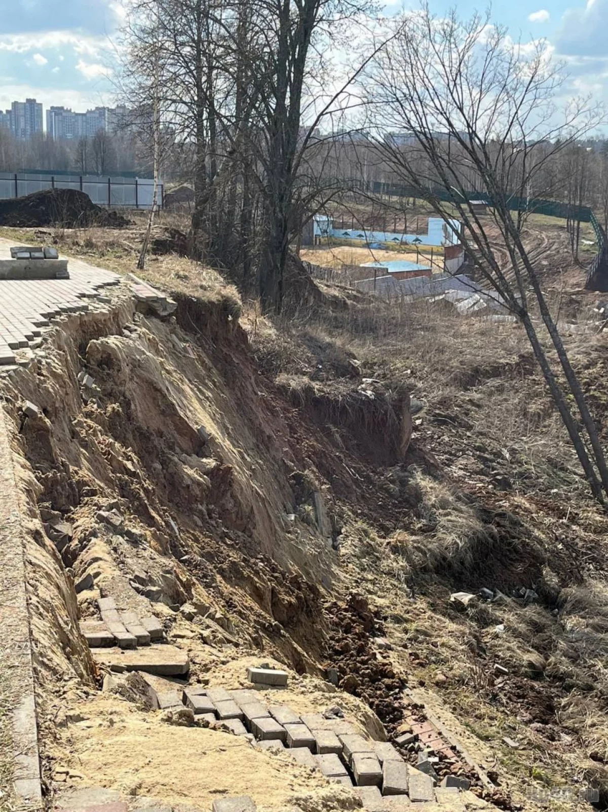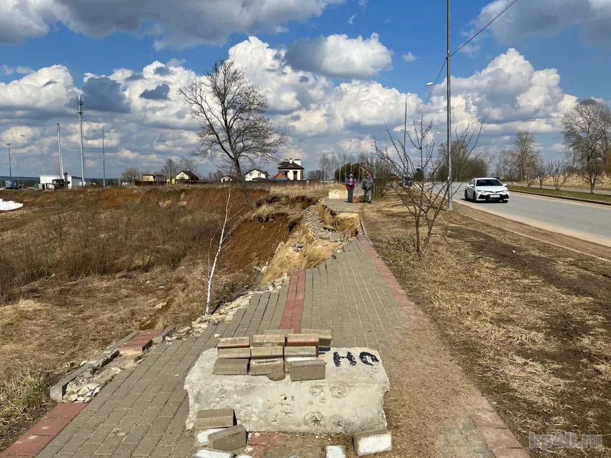 Практически год спустя, 4 апреля 2023 года, мы писали, что тротуар в этом месте полностью обвалился вместе с землей.