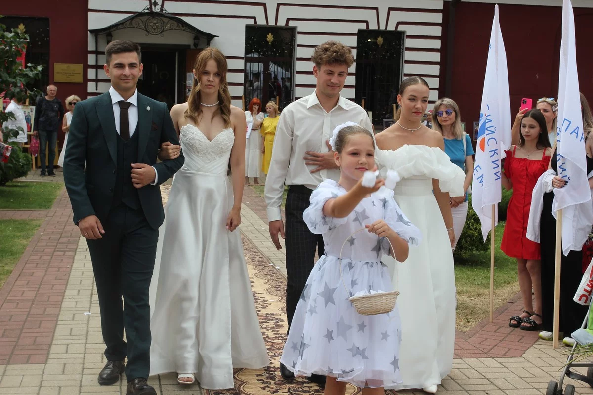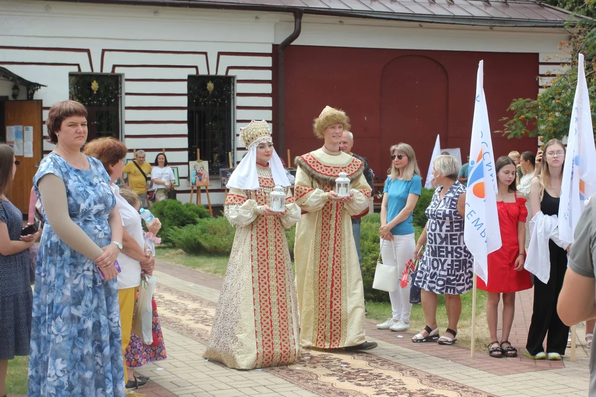 Молодожёнам Евгению и Анастасии Дибровым, Руслану и Марии Клименко вручили частичку семейного очага, который был зажжен на выставке Россия в Москве.