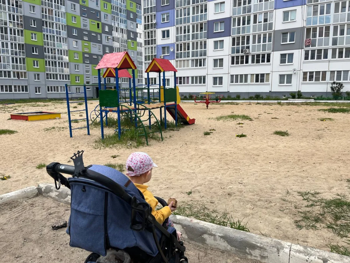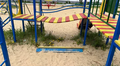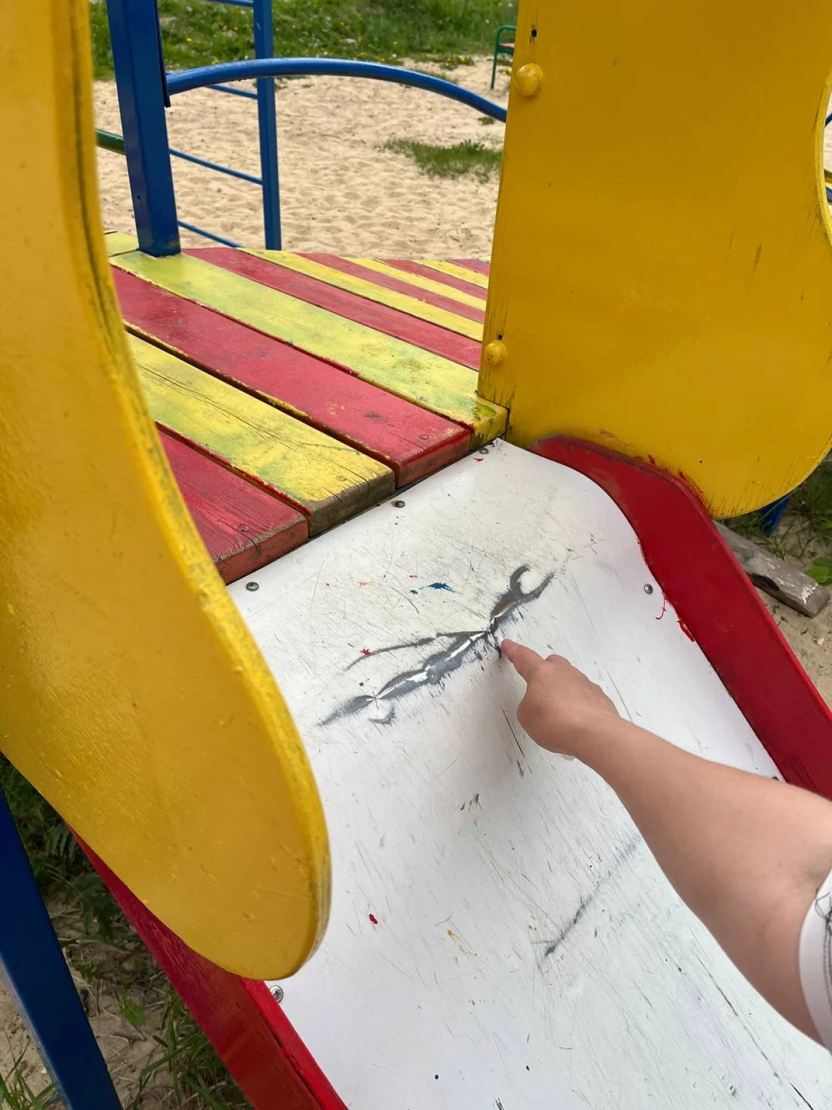 — У меня ребёнок очень любит эту площадку, потому что здесь песок, но посмотрите внимательнее, – подводит меня женщина к детской горке и указывает на неровность. – Этот кусочек мы буквально вбивали камешком, чтобы не было выступа, вот такой острый был. Представляете, что было бы с попой ребенка, если проехаться тут?