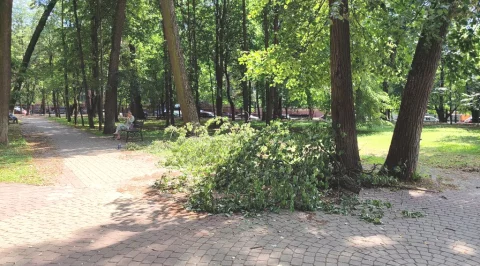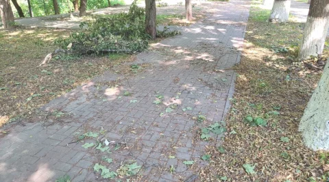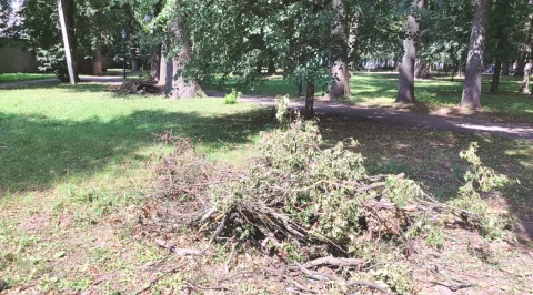 Минусы, увы, тоже есть. Дорожки парка плохо чистят. На них много растительного мусора, к тому же портят вид и кучи старых веток, разбросанные по территории.