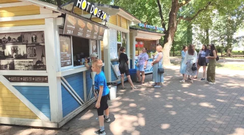 Поллитра питьевой воды в местном киоске стоит 85 рублей. Вообще, дешевле 80 рублей за два 250-граммового стакана обычной воды в калужских скверах и парках мы не нашли.