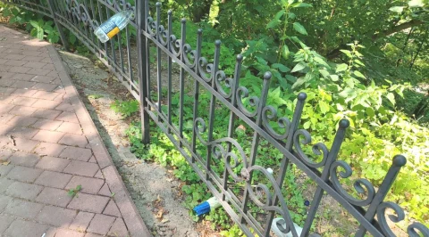 Дорожки давно не убирались. Среди посетителей чаще всего по традиции сюда приходят молодожены, чтобы повесить замочек на специально установленные два железных дерева.