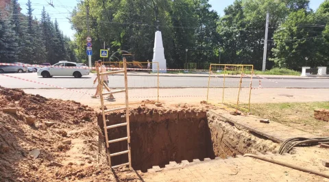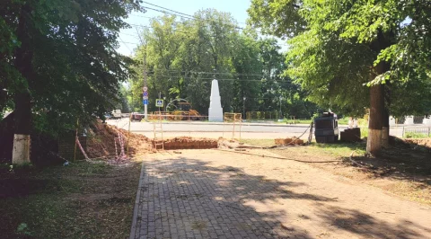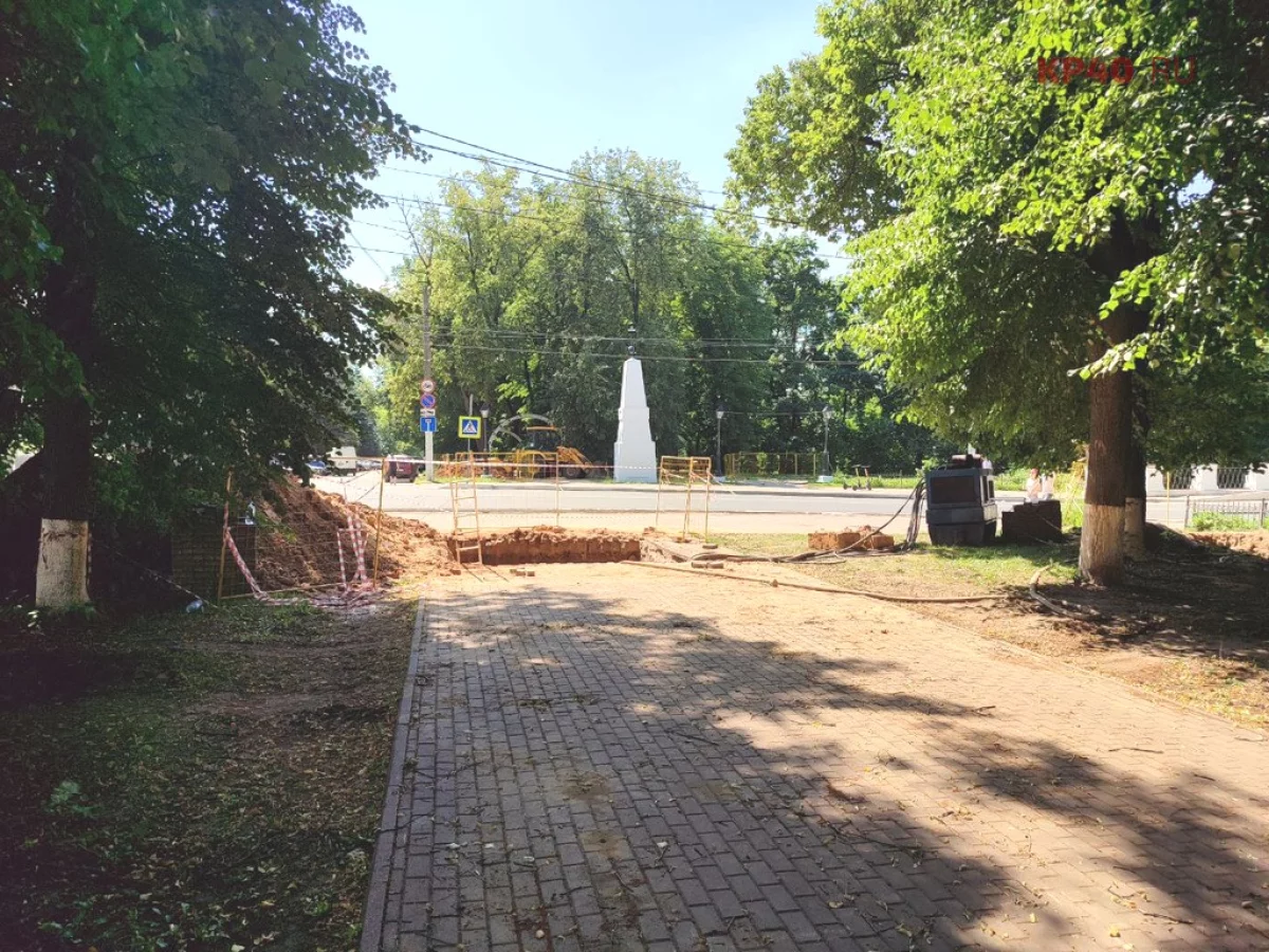 Ходить в него сейчас мы тоже не советуем. Он практически полностью перерыт. Коммунальщики здесь прокладывают трубы. Ямы по всей территории сквера.